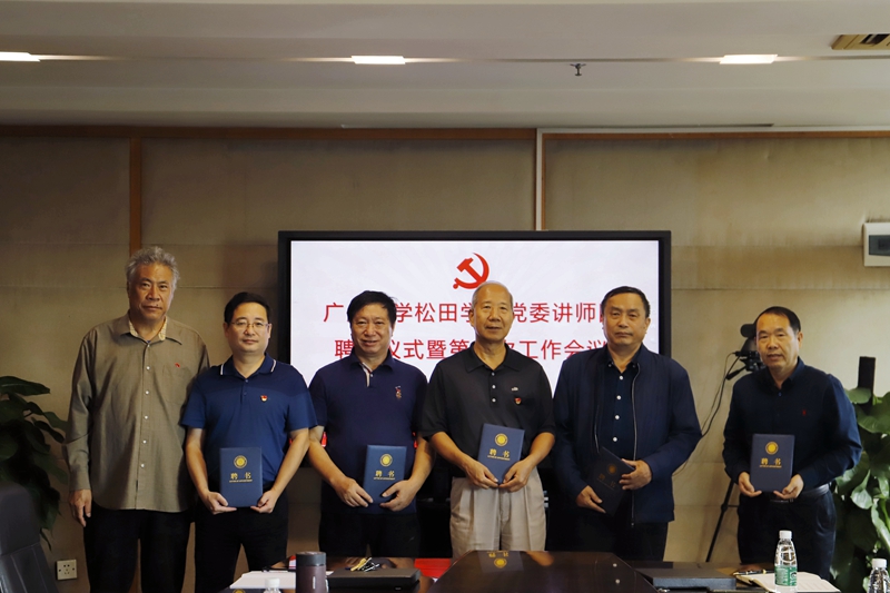 校党委副书记裴九雄首先宣读《关于成立广州大学松田学院党委讲师团的通知》,随后,校长庞永师、书记王永云分别为讲师团成员颁发聘书。