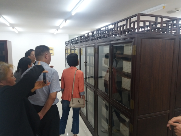 随后,孔晓明馆长带领参观了该校图书馆书库、电子阅览室、图书服务大厅等并详细介绍了该馆的组织结构、人员分工、管理规范、研讨室设置等,突出介绍了该馆文化氛围营造、借书权限闯关系列活动等工作的开展情况,让我校参观人员获益匪浅。