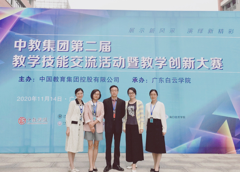 11月14日,中教集团第二届教学技能交流活动暨教学创新大赛在广东白云学院北校区举行。中国教育集团执行董事谢少华,中国教育集团副总裁胡剑锋,中国教育集团教学与人力资源部总监吴金舟,中国教育集团教学与人力资源部经理高志刚以及集团各参赛学校领导、教务处负责人出席了此次比赛。我校副校长李江凌、教务处副处长倪莉与集团各参赛学校领导及教务处负责人担任此次比赛评委。我校艺术与传媒系王丹老师、经济与管理学院魏丽君老师、李重燕老师代表我校参加此次比赛。