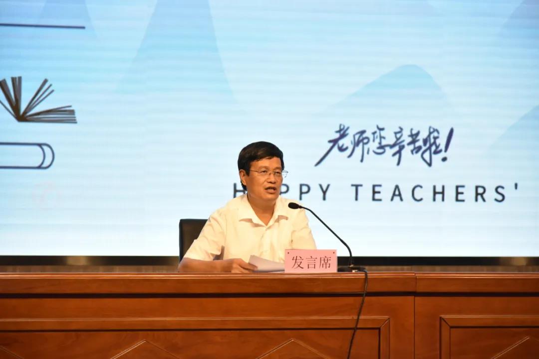 执行校长庞永师在讲话中表示,百年大计、教育为先,教育大计、教师为本。他希望全体教职员工提高政治站位,贯彻新时代教育新理念,办好人民满意的教育;二是坚守教育初心,永葆师者匠心育人情怀,做学生锤炼品格的引路人,学习知识的引路人,创新思维的引路人和奉献祖国的引路人;三、主动担当作为,奋力新征程再创新佳绩,在学校波澜壮阔的未来发展新征程中,乘风破浪、奋勇争先。