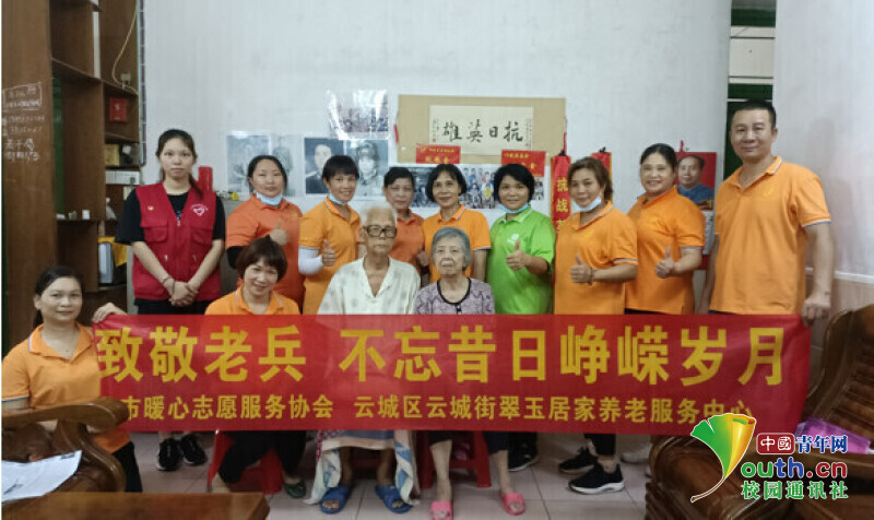 图为实践团成员廖舒婷与社区志愿者一同探访关怀退伍老兵。中国青年网通讯员廖舒婷摄