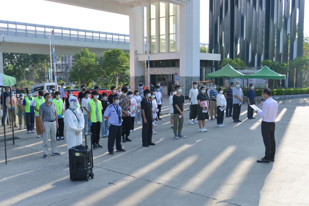 10月19日下午,为认真贯彻落实上级有关平安考试的指示精神,做好我校考点2021年全国成人高考和全国中小学教师资格笔试考试工作,确保考试各环节防疫措施科学、得当,确保全体考生和考试工作人员生命安全和身体健康,我校在广州校区举行疫情防控模拟演练。增城区朱村街公共服务办公室主任程志锋,朱村街疫情防控“三人组”负责人曾有杰,广州应用科技学院执行校长庞永师、副校长陈日利、校长助理欧仕身、董事长助理李杏林等领导观摩并指导演练,各院系负责人和师生代表等参加了模拟演练。