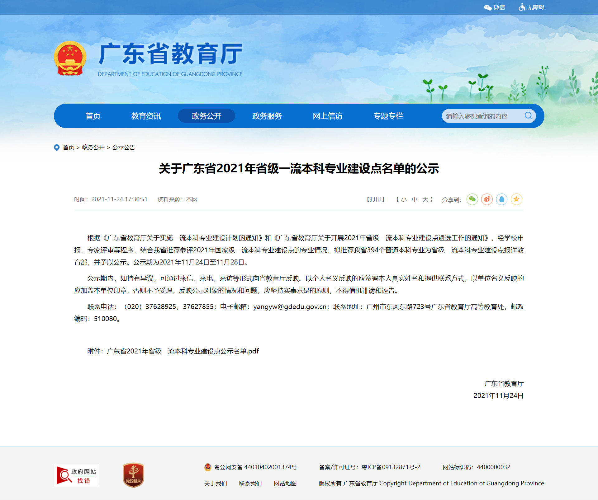 11月24日,广东省教育厅发布《关于广东省2021年省级一流本科专业建设点名单的公示》,拟推荐广东399个普通本科专业为省级一流本科专业建设点报送教育部并予以公示。其中,我校金融学、法学等2个专业拟被推荐为省级一流本科专业建设点。