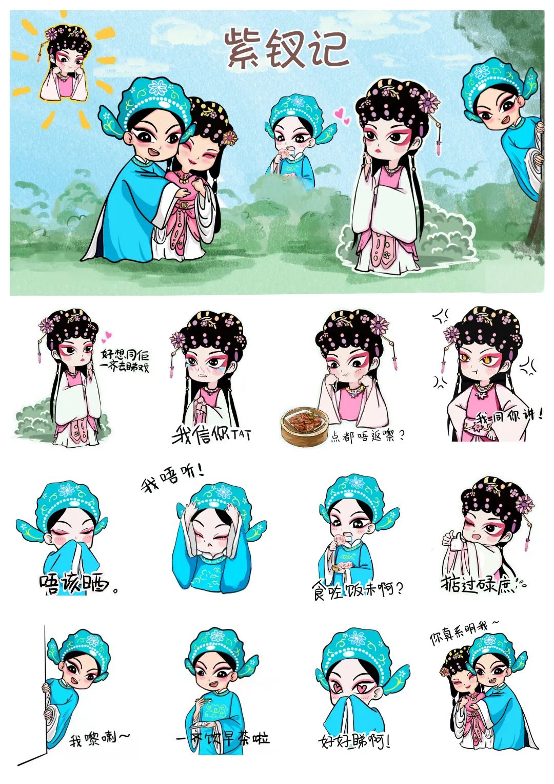 ▲粤剧元素“紫钗记”表情包设计作品