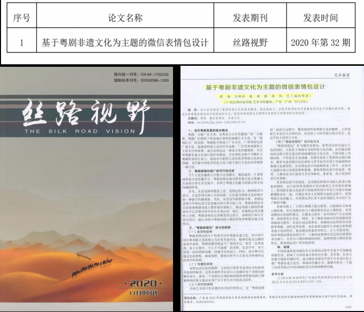 同时,该课程案例“以赛促建”,根植地方非遗元素,结合设计专业特色,把课程中积累的粤剧IP形象,通过参加各类设计比赛的进行二次创作,仅2021年就获得了国内外各大设计比赛奖项6项。另外,阮艺老师带领学生团队开展“非遗科研项目”的理论研究,带领学生团队对粤剧文创设计成果进行科研申报,校级科研项目成功立项2项,对外发表论文1篇,提高了在校学生对“非遗”文化的理论研究水平。