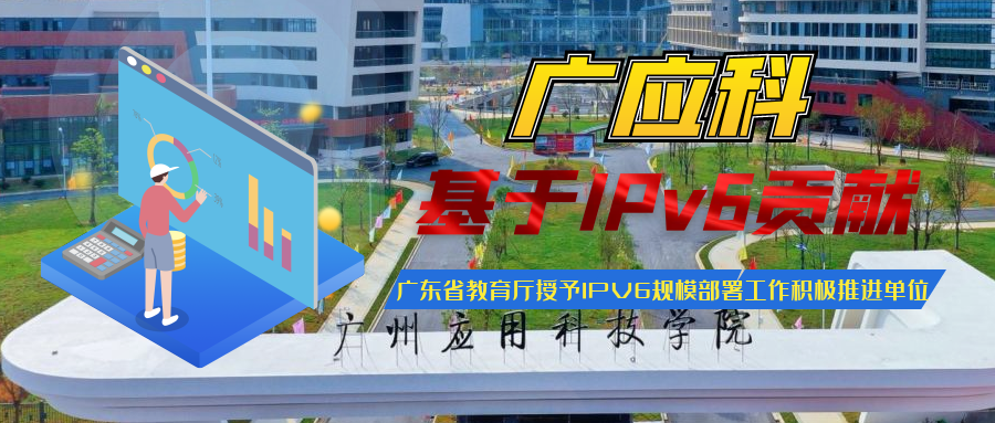 近日,根据《广东省教育厅关于对2021年高校IPv6规模部署推进工作成效明显单位予以表扬的通报》,省教育厅决定对2021年IPv6 规模部署推进工作成效明显的单位进行表扬,我校官方网站的IPV6支持度≥95,学校被评为“2021年IPV6规模部署工作积极推进单位”。