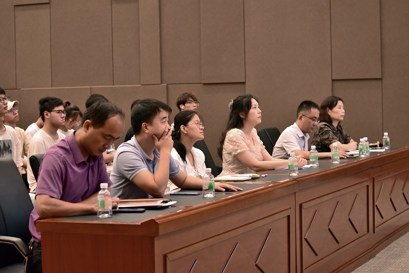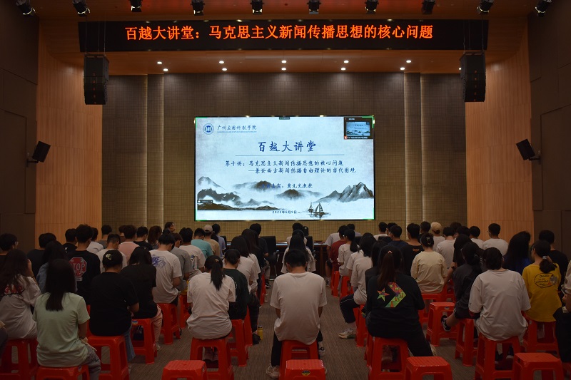 6月9号下午,我校“百越大讲堂”第十讲如期开讲。国家马克思主义理论研究和建设工程首席专家,原中国传播学会会长、全国新闻与传播学专业学位研究生教育指导委员会委员,上海市重点学科带头人,上海市高等教育教学名师,上海大学影视学院博士生导师戴元光教授应邀作《马克思主义新闻传播思想的核心问题》线上直播专题讲座。各二级学院党委书记、副书记、辅导员、教师及学生代表近220余名师生在行政中心一楼主会场和2个分会场聆听讲座。讲座由两名学生中、英双语主持,副校长刘志新教授学术主持。