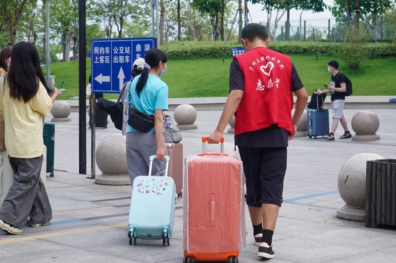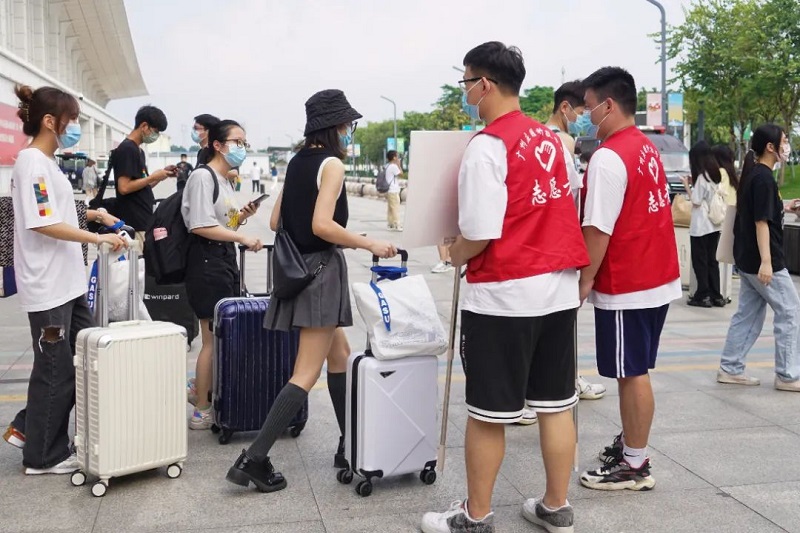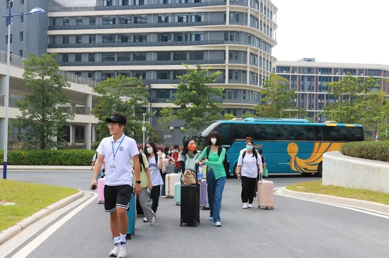 报到当天,学校安排多辆大巴在肇庆粤运汽车总站、肇庆火车站、肇庆东站(高铁)、鼎湖东站(城轨)暖心等候新生。接待新同学们乘坐学校安排的车辆无缝链接来校报到注册。