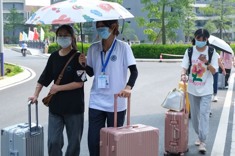 为顺利迎接普通专升本新生,学校专门设置了新生从校门到宿舍区一站式直达报到的路线。沿途架起遮阳棚,简化报到流程,实现一站式拎包入住。清晰的路牌为新生家长车辆提供指引,志愿者积极为新生搬运行李。学校还在报到现场为新生和家长免费提供凉茶,将热情与温暖带给新生。