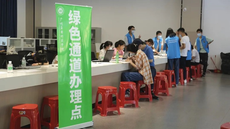 为确保家庭经济困难的新生顺利入学,我校在肇庆校区学生服务大厅开设“绿色通道”办理点,确保每一位新生安心入学,不让一个学生因家庭经济困难而失学。
