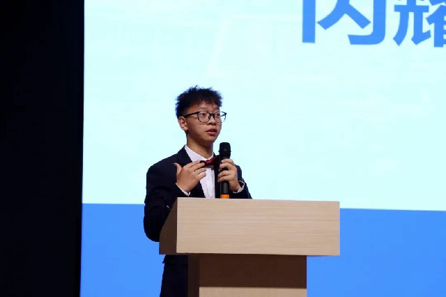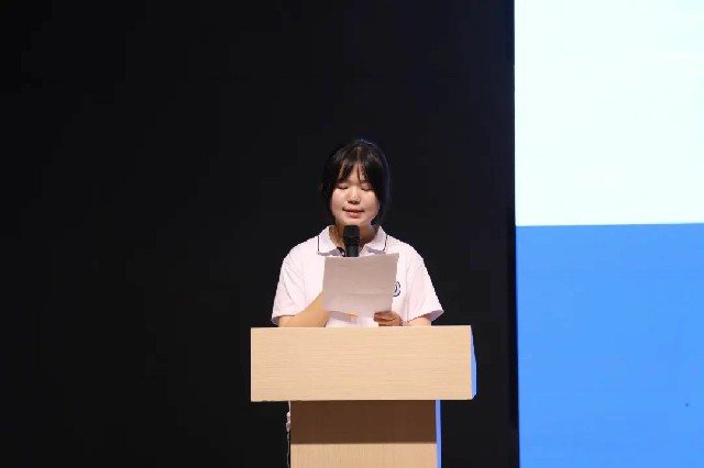2022级新生代表陈兆阳发言,她期待在学长学姐的带领与帮助励下,积极参与班集体、社团活动。她期待接下来的军训,她觉得军训不仅仅是考验,更是一份爱与陪伴。她希望自己和同学们都手握中国梦的大旗,做一个理想者不空谈,仁爱者不软弱,刚直者不偏激的当代大学生。