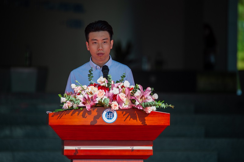 学校董事长王睿在开馆仪式上致辞,他充分肯定了图书馆在学校发展中的突出作用,他表示,学校肇庆校区图书馆的正式开馆,是我校文化发展的重要里程碑,将对我校文化品位提升、精神文明建设、师生精神文化生活的丰富等产生一定的推动作用。王睿董事长表示,图书馆要紧紧围绕学校中心工作,创新管理模式,提高服务水平,使图书馆成为师生最向往的地方,为学校教育教学高质量发展做出应有的积极贡献,让学生在这里可以感受到深厚文化浸染的同时,也能领略新馆无处不在的人文魅力。他希望图书馆作为肇庆校区建设‘山水校园,文礼学府’的标志性建筑,以打造现代化图书馆为目标,充分发挥文化育人的功能,为促进学校的教育教学事业添砖加瓦。