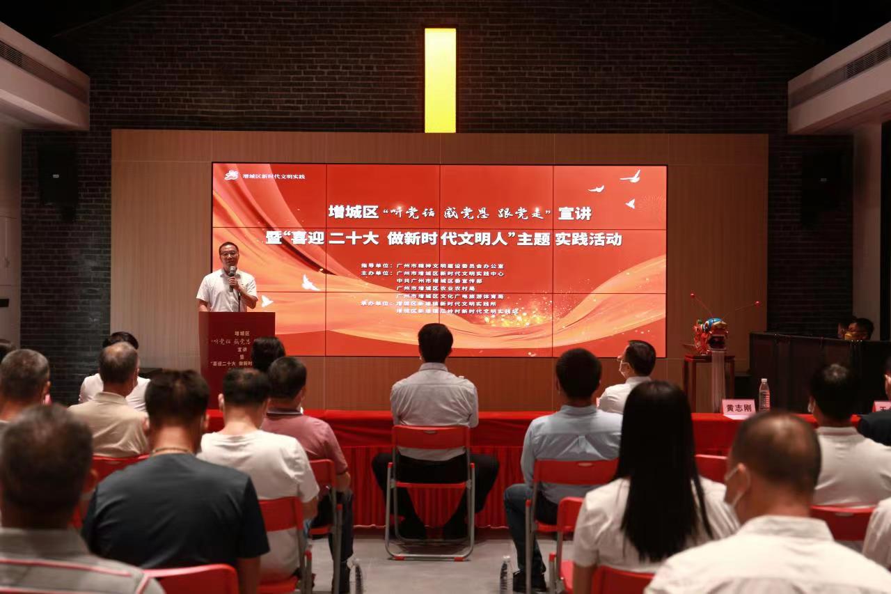 9月23日,恰逢第五个中国农民丰收节,广州市增城区“听党话 感党恩 跟党走”主题宣讲暨“喜迎二十大 做新时代文明人”主题实践活动(新塘专场)在新塘镇瓜岭村举行。增城区委宣传部负责人、新塘镇各村(社区)书记、非遗传承人、高校和企业、村民代表齐聚一堂,共话丰收带来的喜悦,感受古村焕发的新活力,探讨乡村振兴新篇章。我校党委书记王永云应邀出席活动。
