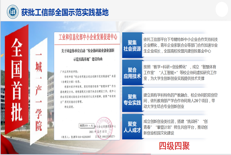 近日,广东省教育厅公布广东省大学生创新创业教育示范学校(2022年-2025年)名单,广州应用科技学院正式入选,也是广州市唯一获入选的民办本科高校。本次遴选工作由省教育厅组织专家组依据《广东省大学生创新创业教育示范学校遴选标准(修订)》开展,经过高校申报、网上评审、线上答辩、终审会议及公示无异议等程序。全省参与申报(复评)的13高校脱颖而出,成为新一轮广东省大学生创新创业教育示范学校。