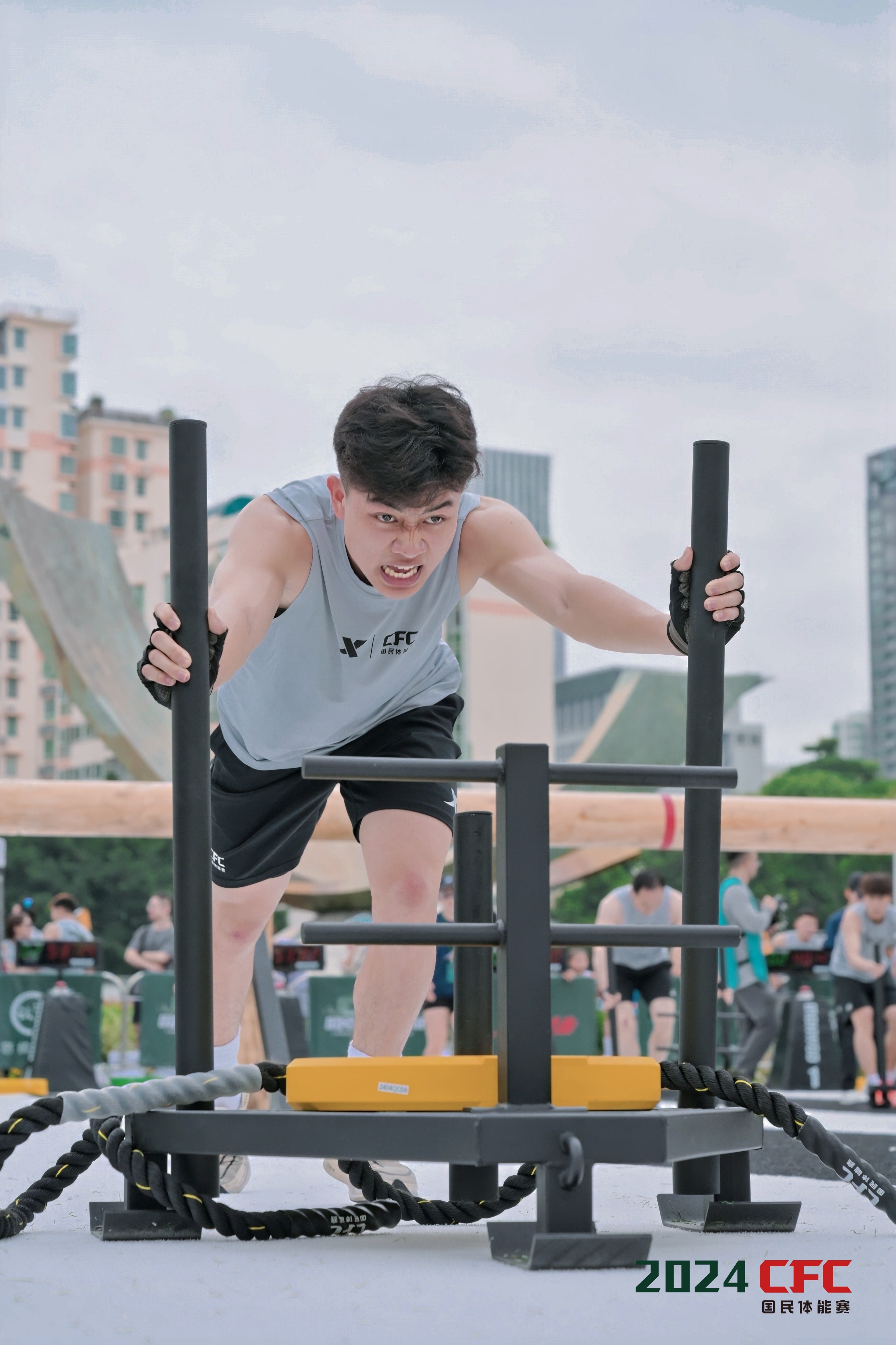 CFC国民体能赛作为一项充满潮流与创新元素的赛事项目,采用新入奥的现代五项中的障碍项目的组合形式进行设计,在一段距离的赛道上,设置若干个障碍关卡。参赛者需遵循赛事规则,沿赛道前进并依次通过各个关卡。这一赛事不仅考验参赛者的平衡能力、协调能力以及敏捷性,更对参赛者的综合体能素质提出更高的要求。
