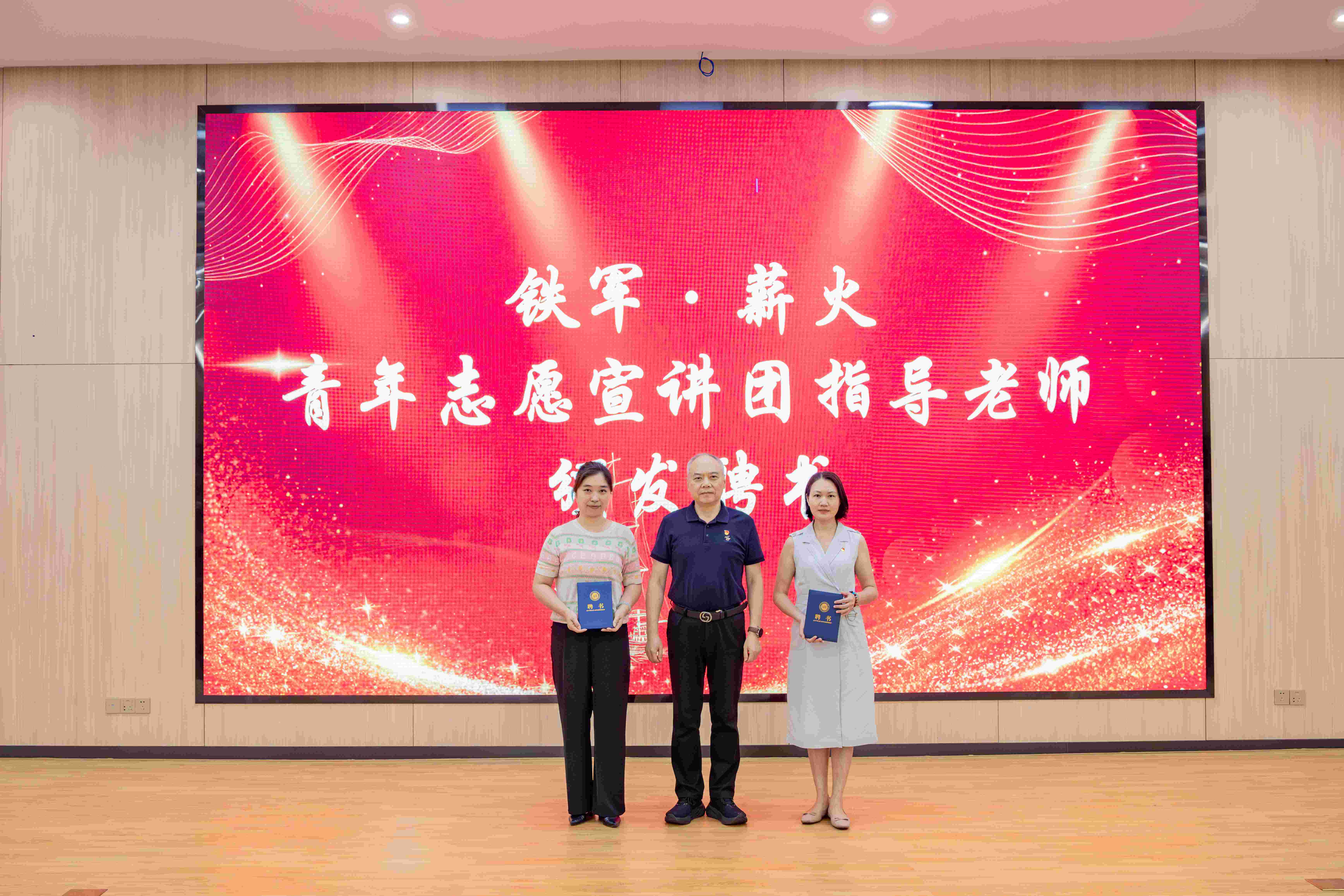 活动上,我校校长张光宇与叶挺独立团团部旧址纪念副馆长林剑清,分别代表双方签署校馆共建协议。林剑清副馆长向“铁军·薪火”青年志愿宣讲团代表授旗。张光宇执行校长向“铁军·薪火”青年志愿宣讲团指导老师颁发聘书。