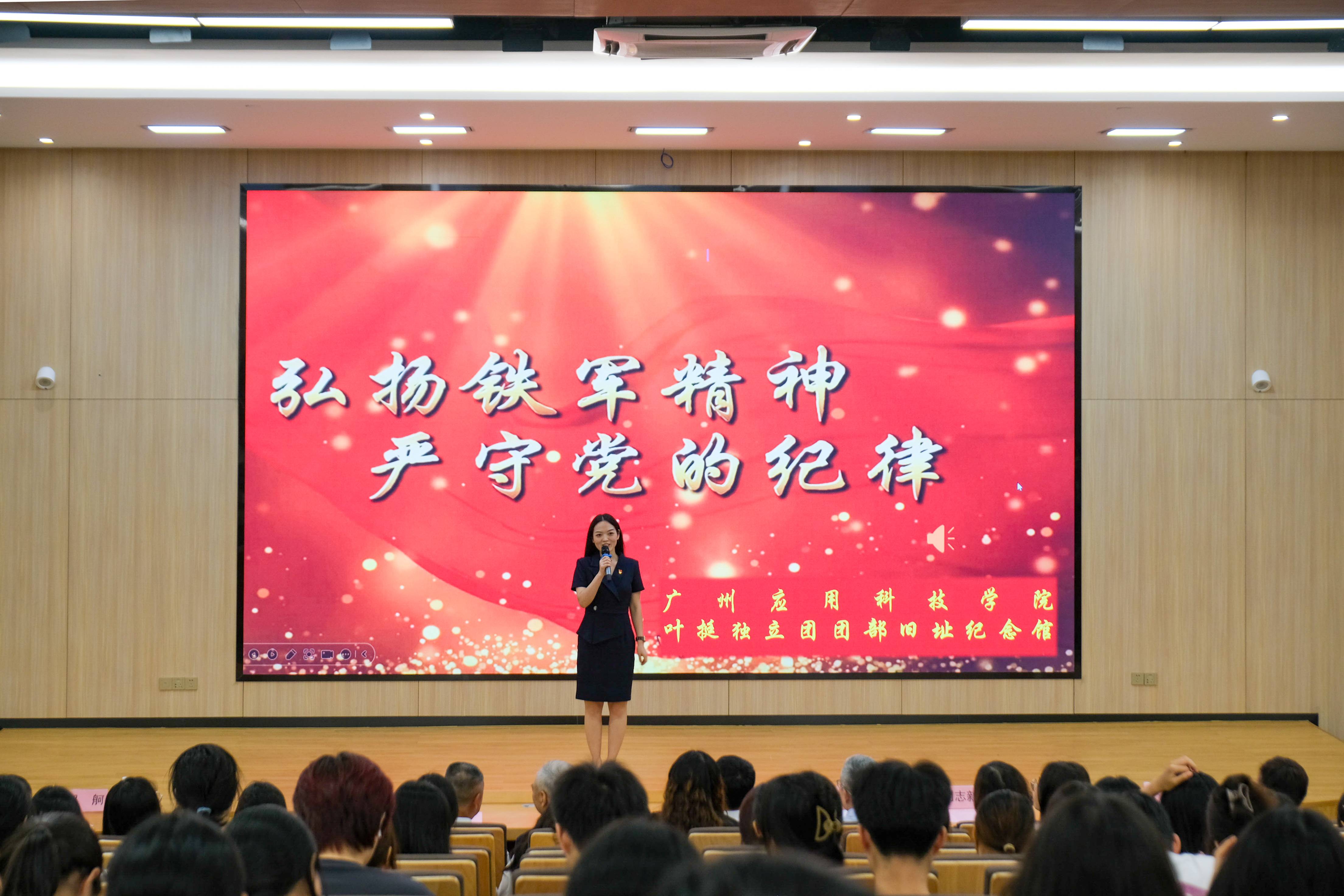 揭牌仪式上,我校唐小宁老师讲授了微党课《弘扬铁军精神严守党的纪律》,该微课是我校与叶挺独立团团部旧址纪念馆共同创作的情景式党纪学习教育微党课,在今年的肇庆市教育系统“青春向党 奋斗强国”8090讲党课比赛中获得一等奖。