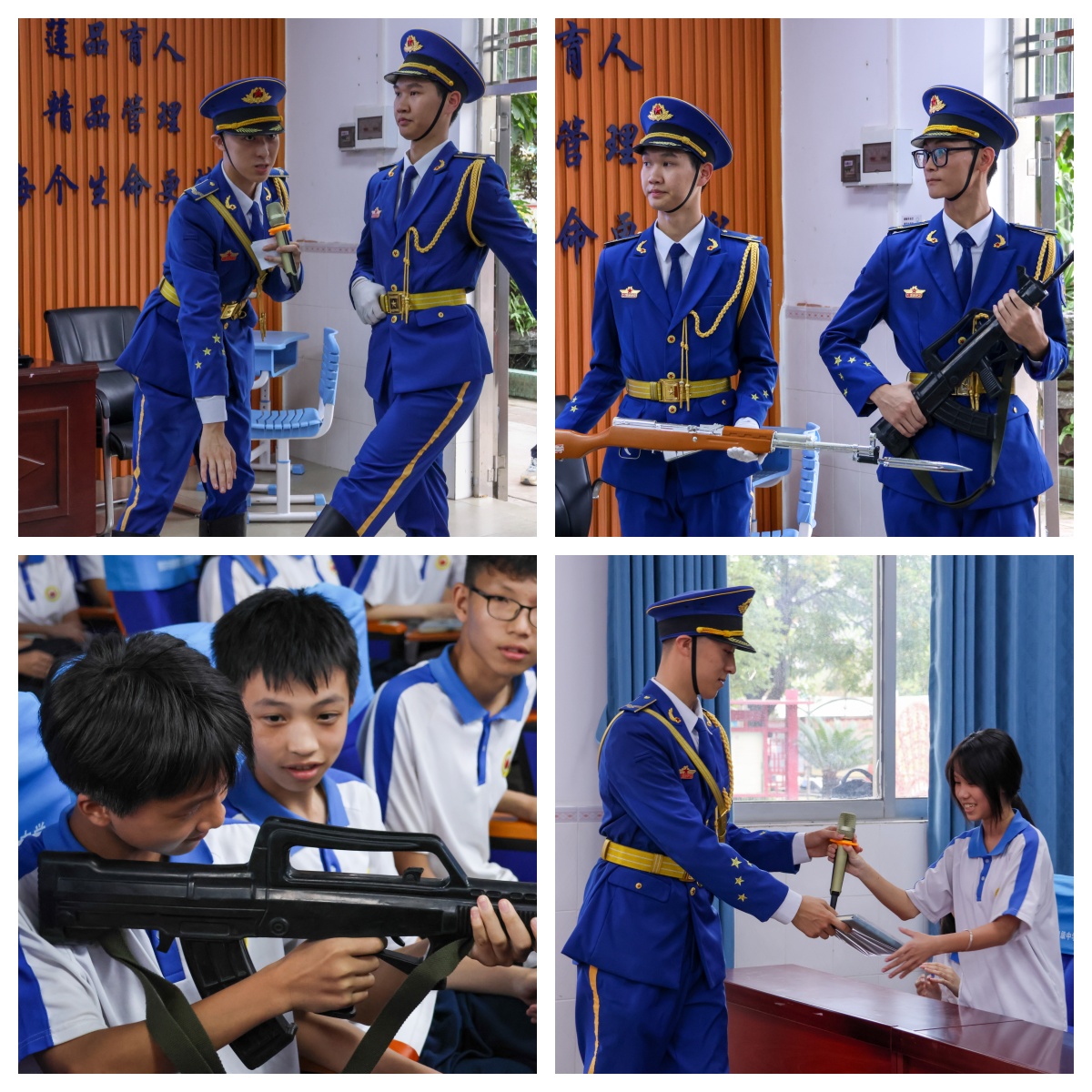 课堂上,国旗护卫队队员们通过56式礼兵枪和95式自动步枪等机械展示和实操演练,让同学们对国防装备有了更加直观的了解和认识。国防知识问答环节吸引了现场同学们的热情参与,活动结束后,每位参与的学生均获得了一份由广应科精心准备的专属纪念品。