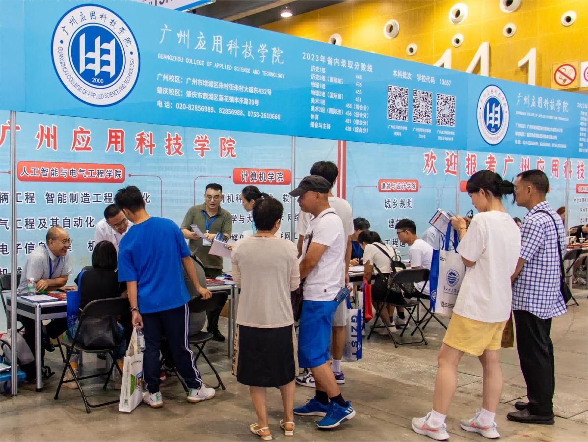 在咨询会现场,广州应用科技学院展台前人头攒动,考生和家长纷纷驻足咨询,了解学校的招生政策、招生计划、专业设置等相关信息,我校招生老师耐心、细致、专业的解答着每一位考生和家长的疑问,并向他们发放招生简章。我校招生团队展现出的专业素养赢得了现场考生与家长的一致好评。