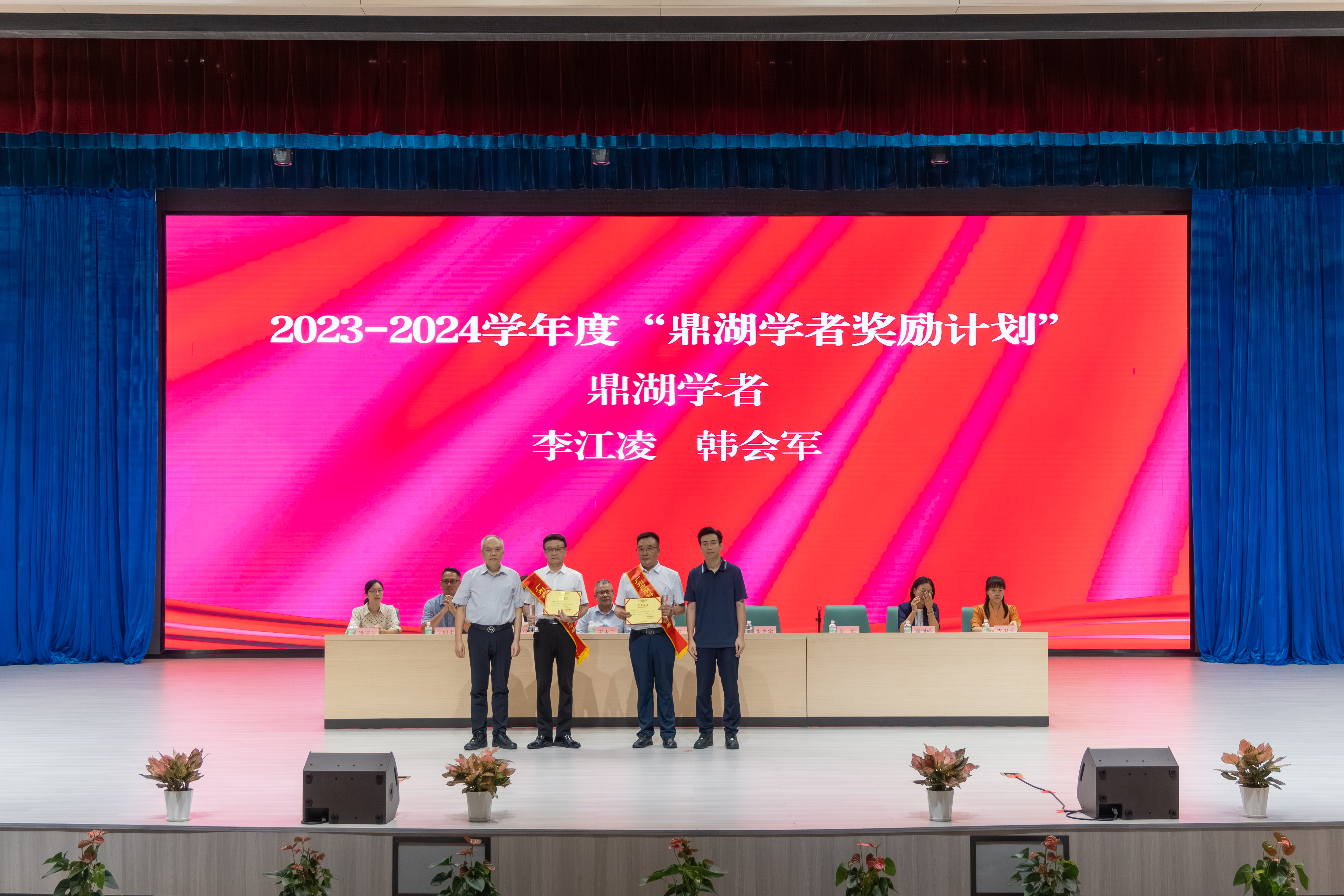 学校党政校领导为“鼎湖学者奖励计划”获得教师,以及获得先进集体、先进个人、教学优秀奖教师代表颁奖。