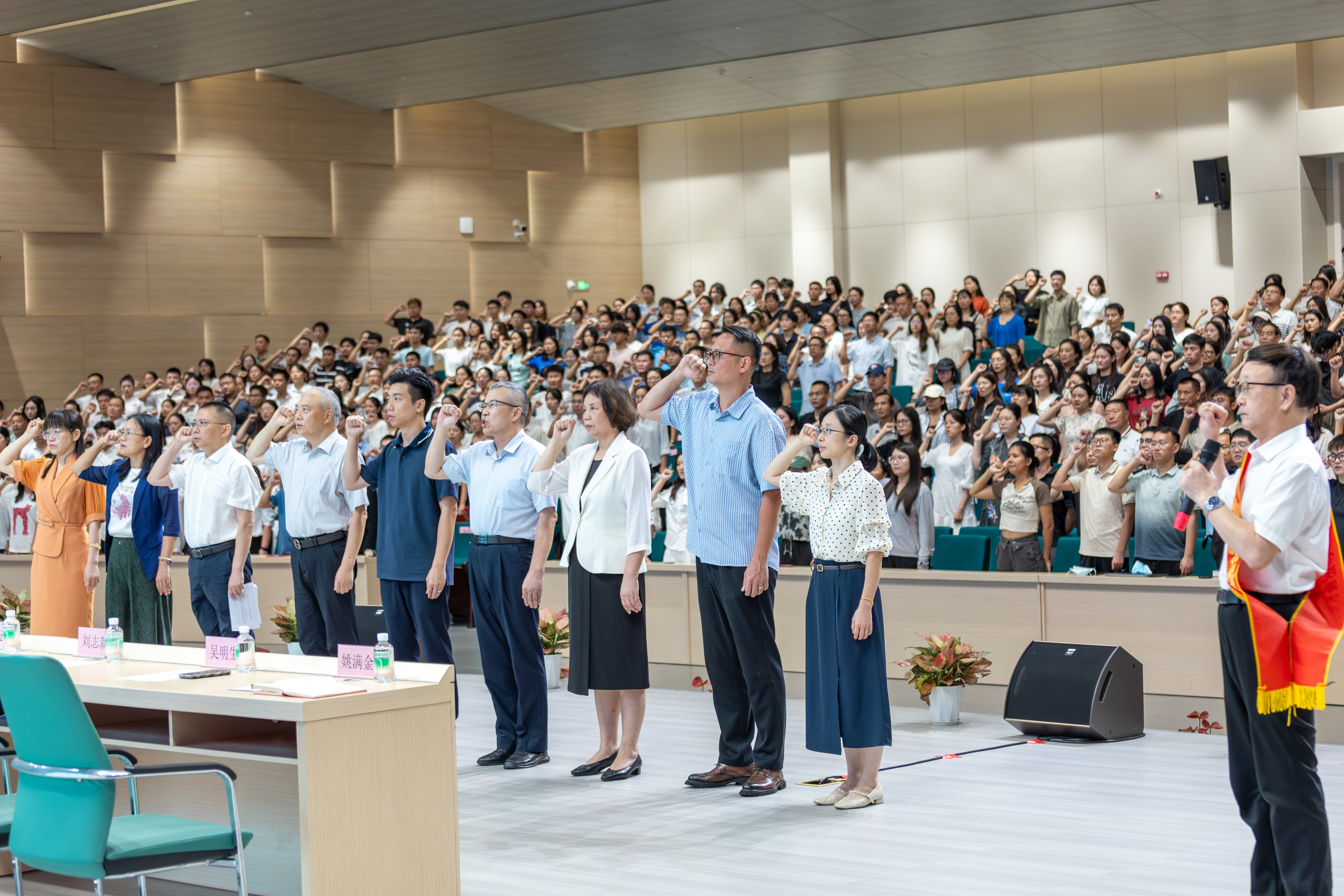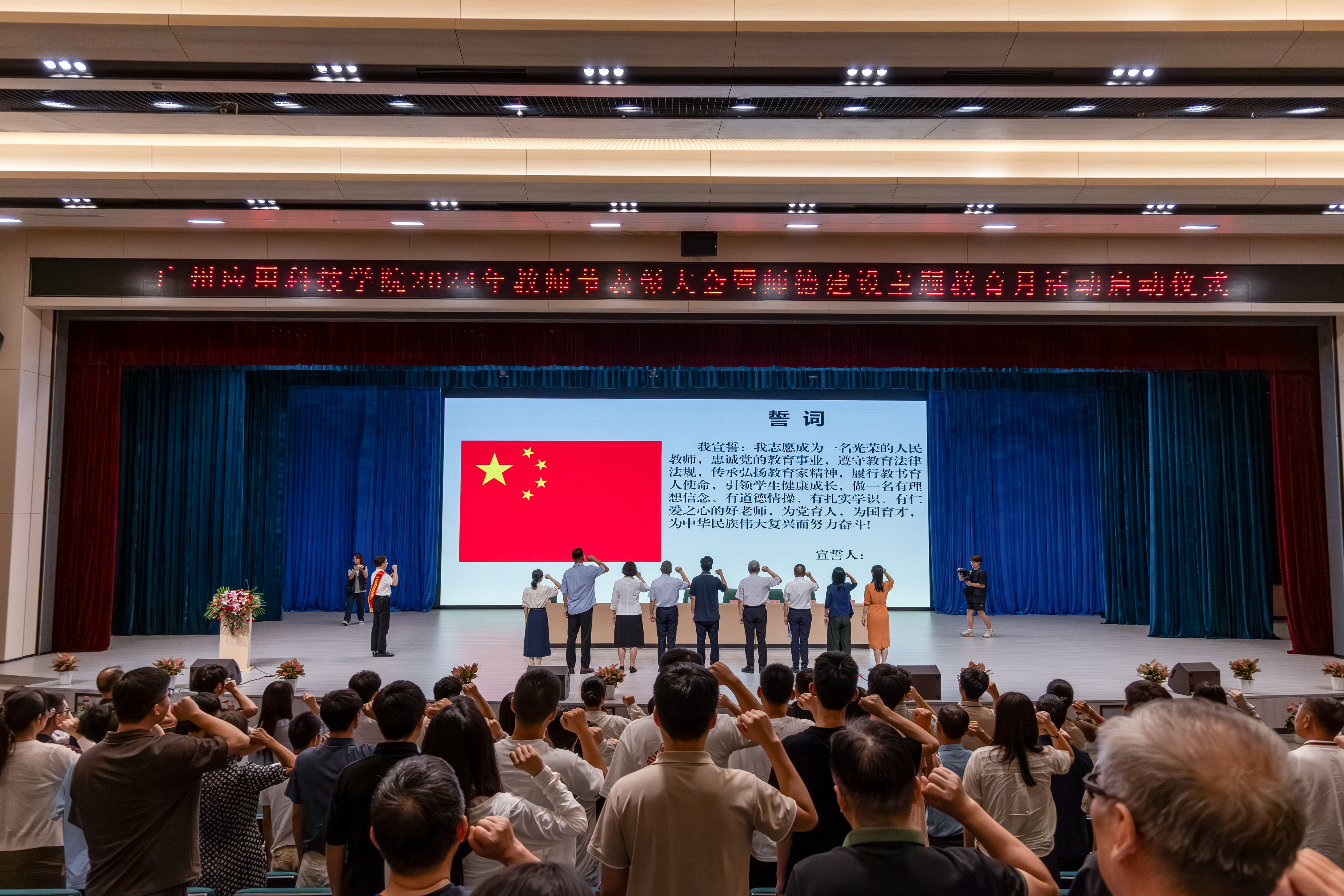 董事会领导、党政校领导带领与会的全体教职工进行庄严宣誓,为党育人,为国育才。