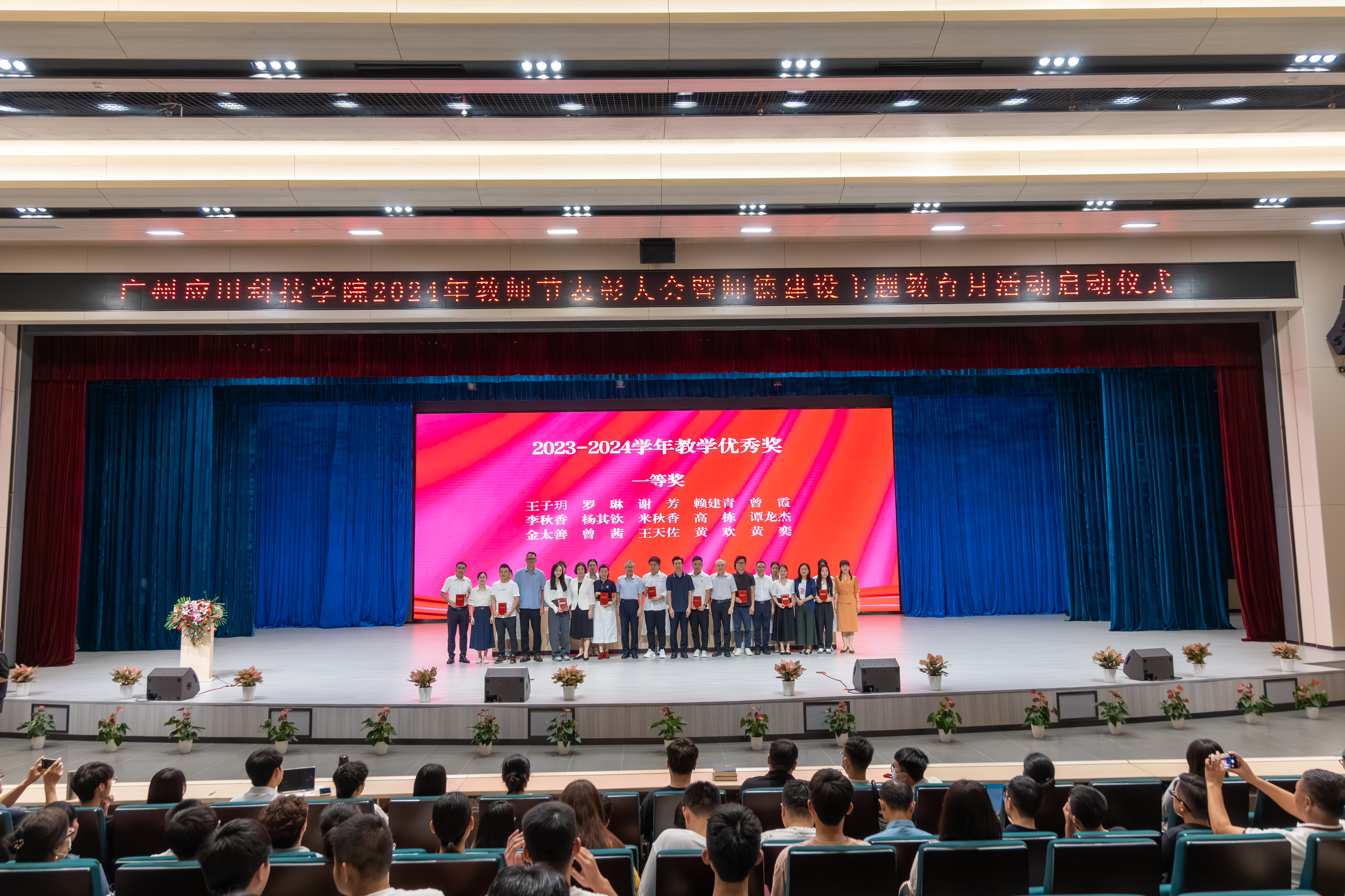 为深入学习贯彻习近平总书记关于教育的重要论述,持续推进教师思想政治和师德师风建设工作,在第40个教师节即将到来之际,为营造崇德向善、尊师重教的浓厚氛围,广泛宣传新时代好老师形象,以实际行动表达对教师的尊敬,9月9日,我校举行2024年教师节表彰大会暨师德建设主题教育月活动启动仪式。学校董事长王睿、执行校长张光宇、党委书记王永云、常务副校长吴舸、副校长刘志新、副校长李荆松、校长助理吴明生、校长助理李根珍、财务总监姚满金等董事会及党政校领导出席大会,教职工代表参加大会。大会由常务副校长吴舸主持。