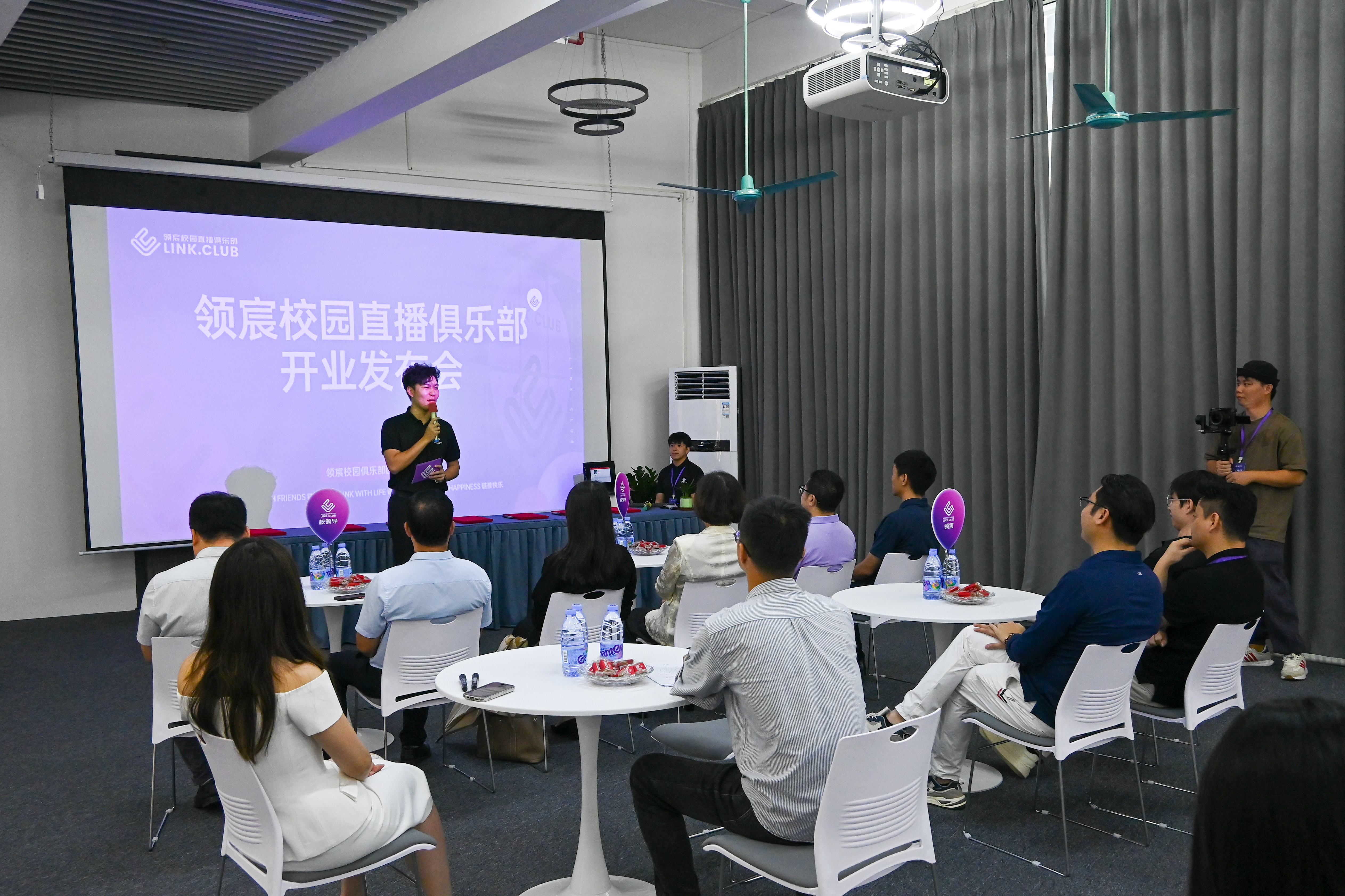 9月26日上午,广州应用科技学院科技广场热闹非凡,领宸校园直播俱乐部举行开业发布会。此次活动不仅标志着广应科校园直播校企合作的开启,更是一次教育与新兴产业深度融合的积极探索。中国教育集团投资关系部总监郭盈莹,我校副校长刘志新,广东横琴粤澳深度合作区领宸投资有限公司董事长陈高艺、总经理黄沂等领导出席发布会,党委宣传部部长李帆、创新创业学院院长荀海鹏、校团委书记郭振、总务处副处长刘绍松,以及师生代表参加开业发布会。