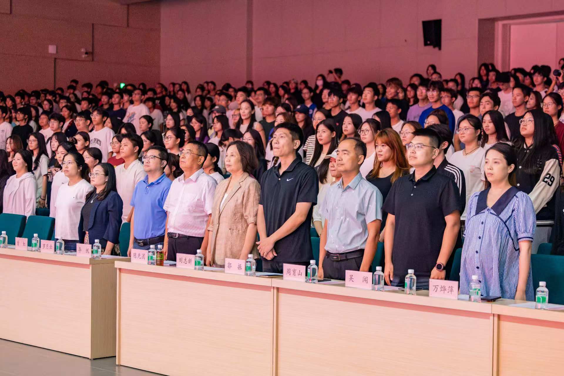 党委书记陈光团,副校长刘志新,党委宣传部部长李帆,校团委书记郭振,校团委副书记万烨萍,计算机学院党委书记周育山,文学与传媒学院党委副书记李妙芝,外国语学院党委副书记吴闻,音乐学院副院长罗月云等9位领导同时按下启动仪式灯柱,标志着我校第十九届文体艺术季活动正式开幕!