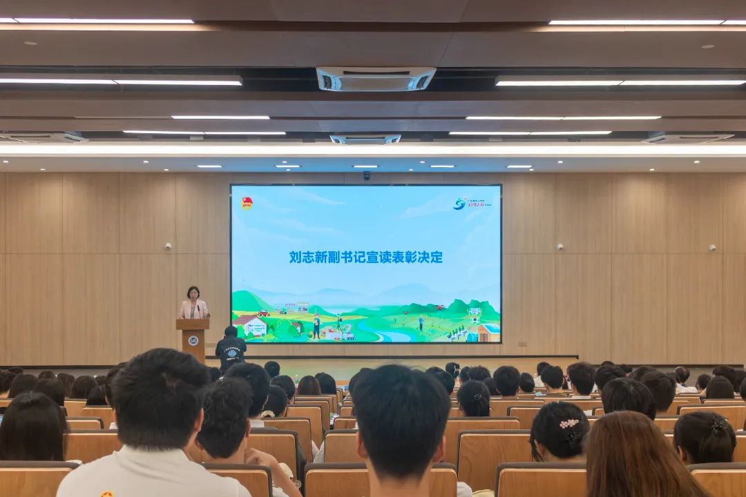 校党委副书记、副校长刘志新宣读《关于表彰2024年暑期“三下乡”社会实践活动暨广东青年大学生“百千万工程”突击队行动先进集体和个人的决定》。为深入总结经验、做好典型宣传、激励广泛参与、发挥育人实效,学校团委决定对2024年暑期“三下乡”社会实践活动暨广东青年大学生“百千万工程”突击队行动先进集体和个人进行表彰。“马兰花开”实践队获教育部2024年“推普助力乡村振兴”全国大学生暑期社会实践志愿服务团队立项;“忆来路,踏新程”志愿宣讲团等13支团队获团中央全国大学生社会实践专项团队立项;文学与传媒学院、美术创意学院、法政学院等3个学院被评为“优秀组织单位”;“百桂圩兴”实践队等35支团队被评为“优秀实践团队”;余缅萍等42位同志被评为“优秀指导教师”;陈文兴等214名同学被评为“优秀个人”。《马兰花开》等6个视频作品被评为社会实践成果网络主题展播活动“优秀视频作品”;《乡媒传音》等3个小红书作品被评为社会实践成果网络主题展播活动“优秀小红书作品”。