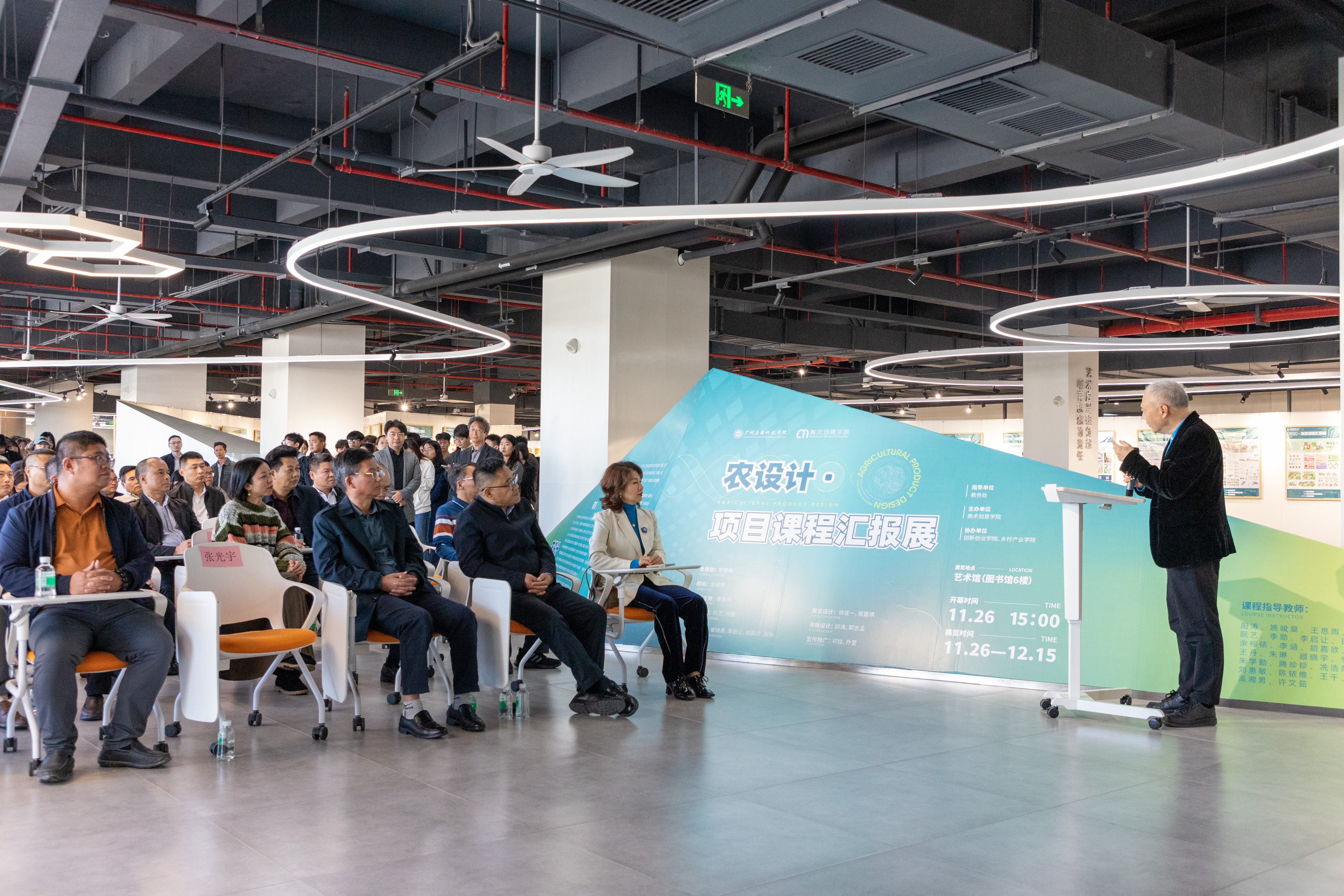 在冬意渐浓的11月26日下午,广州应用科技学院艺术馆内人声鼎沸,一场别开生面的“农设计”项目课程展览在这里精彩开展,来自学校领导、肇庆市相关部门负责人和部分企业家企业家齐聚一堂,共同见证这一“设计兴农”的盛会。此次展览是广州应用科技级学院为深入贯彻落实省委关于实施“百县千镇万村高质量发展工程”部署要求,由美术创意学院的师生一年来全面推进“农设计”项目进入课堂的教学成果。