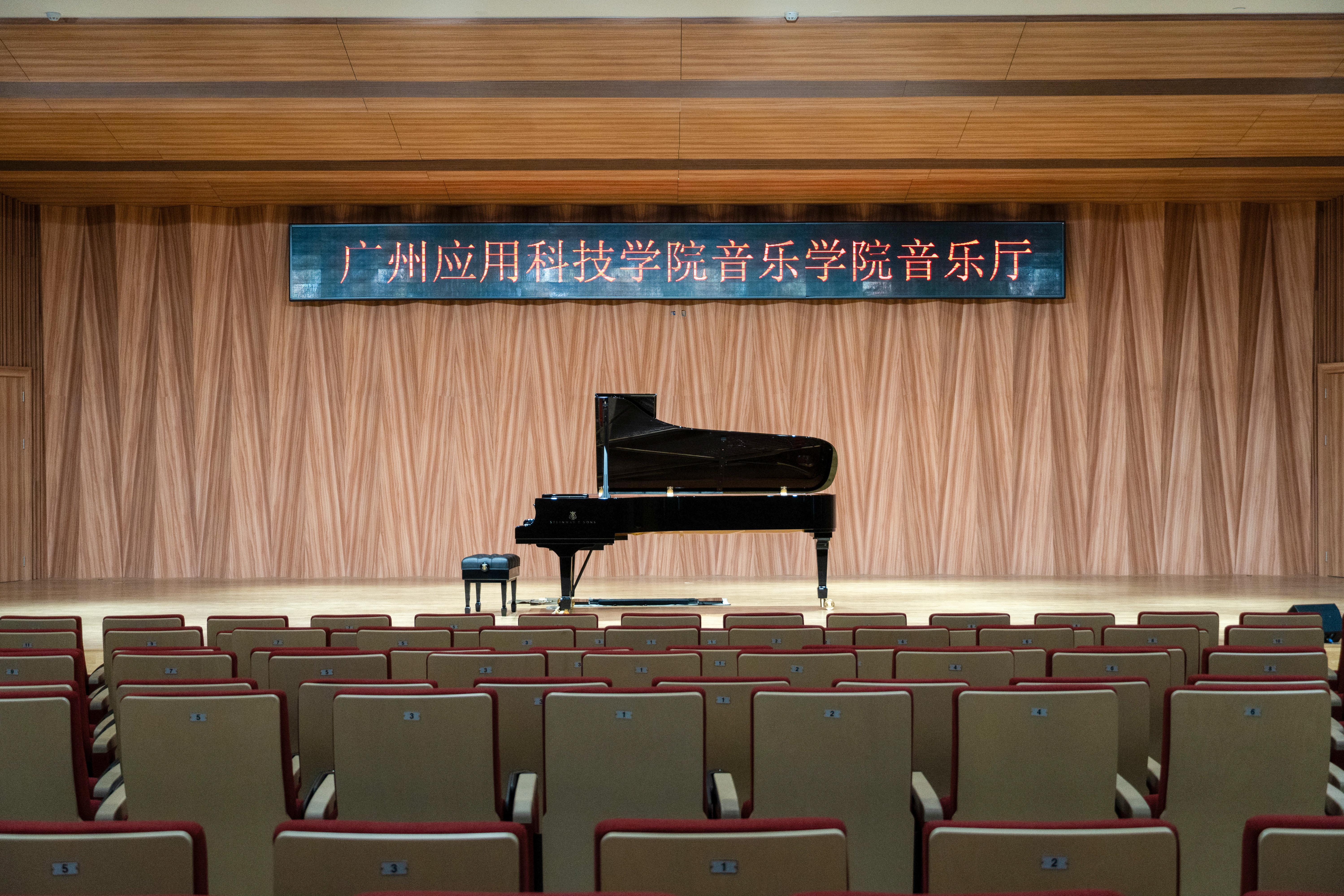 目前,广州应用科技学院已配备施坦威演奏级三角钢琴,建设有可供演唱、乐团演奏的大型室内音乐厅,以及大型舞蹈教室、数码钢琴室、基础音乐理论教室、大型阶梯教室、学生琴房、教师琴房、电脑音乐室(配备MIDI音乐制作设备),充分满足高质量人才培养的需求。