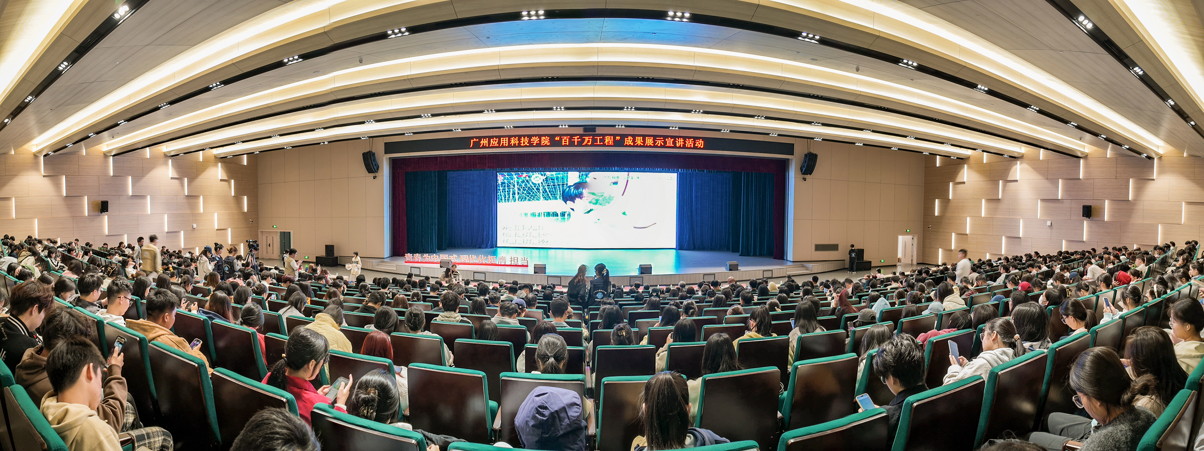 宣讲决赛现场,各二级学院宣讲员用通俗易懂、生动鲜活的语言讲述了“百千万工程”的故事和实践经验,多角度展示广应科实施“百千万工程”取得的成效,让师生们对今年开展“百千万工程”有了更加全面和深入的了解。