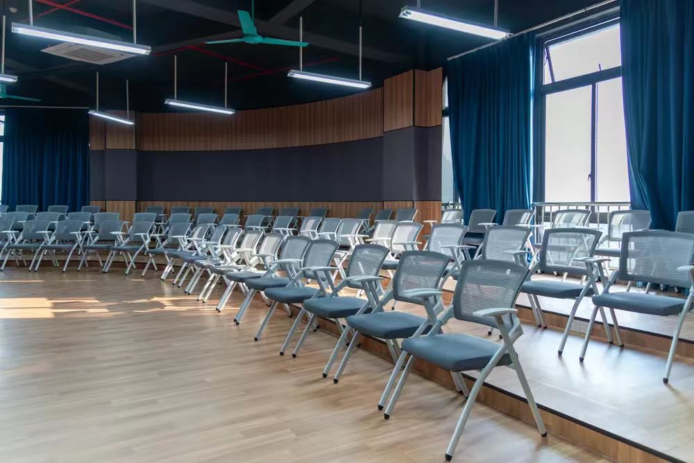 音乐厅位于校园的治平楼一楼,其设计与校园整体风格紧密结合,体现了学校在文化教育与艺术层面的追求考量。音乐厅内部设施齐全,座椅选用深红色天鹅绒面料,确保观众舒适度的同时,彰显出音乐厅的庄重。舞台背景由巨大的弧形幕墙构成,与先进的灯光系统相配合,可根据演出的需求进行灵活变换,从而增添视觉层次与美感。