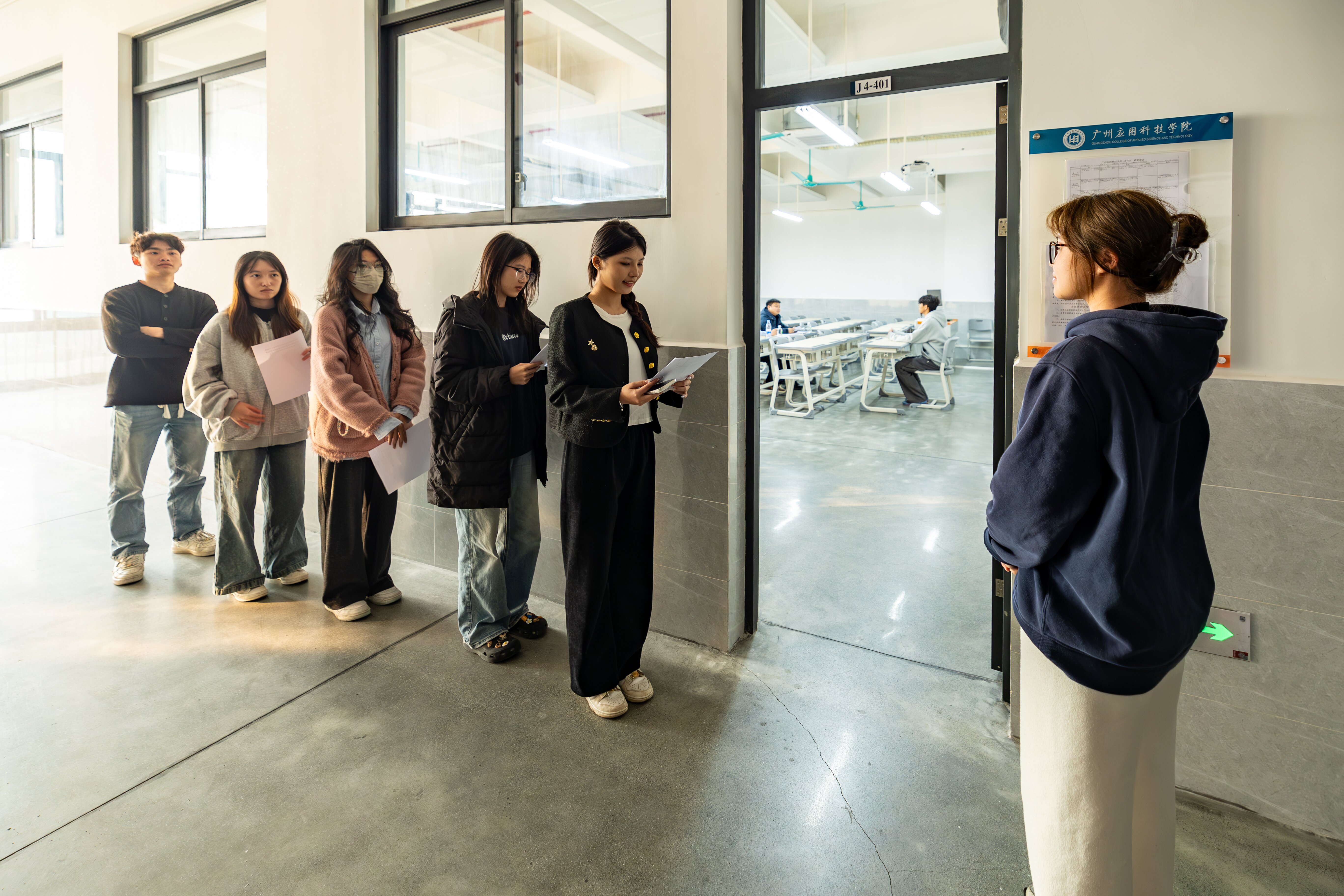 候考室里,学子们穿着整齐的衣装,对即将进行的面试做好了充分的准备。在等待的过程中,他们利用好时间,整理资料打好腹稿,反复温习着即将展示的自我介绍,或与身旁的同学轻声交谈,分享彼此的经验感悟。面对难以避免的紧张情绪,学子们都积极地进行心理调适,努力让自己保持最佳的状态,准备在面试中发挥最高的水平,展现出最好的自己。