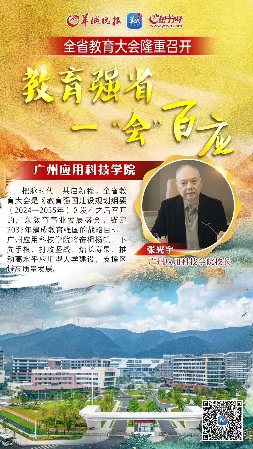 广州应用科技学院校长张光宇 接受南方日报、羊城晚报等主流媒体专访 结合全省教育大会精神 围绕建设教育强省和广应科高质量发展 谈感想体会