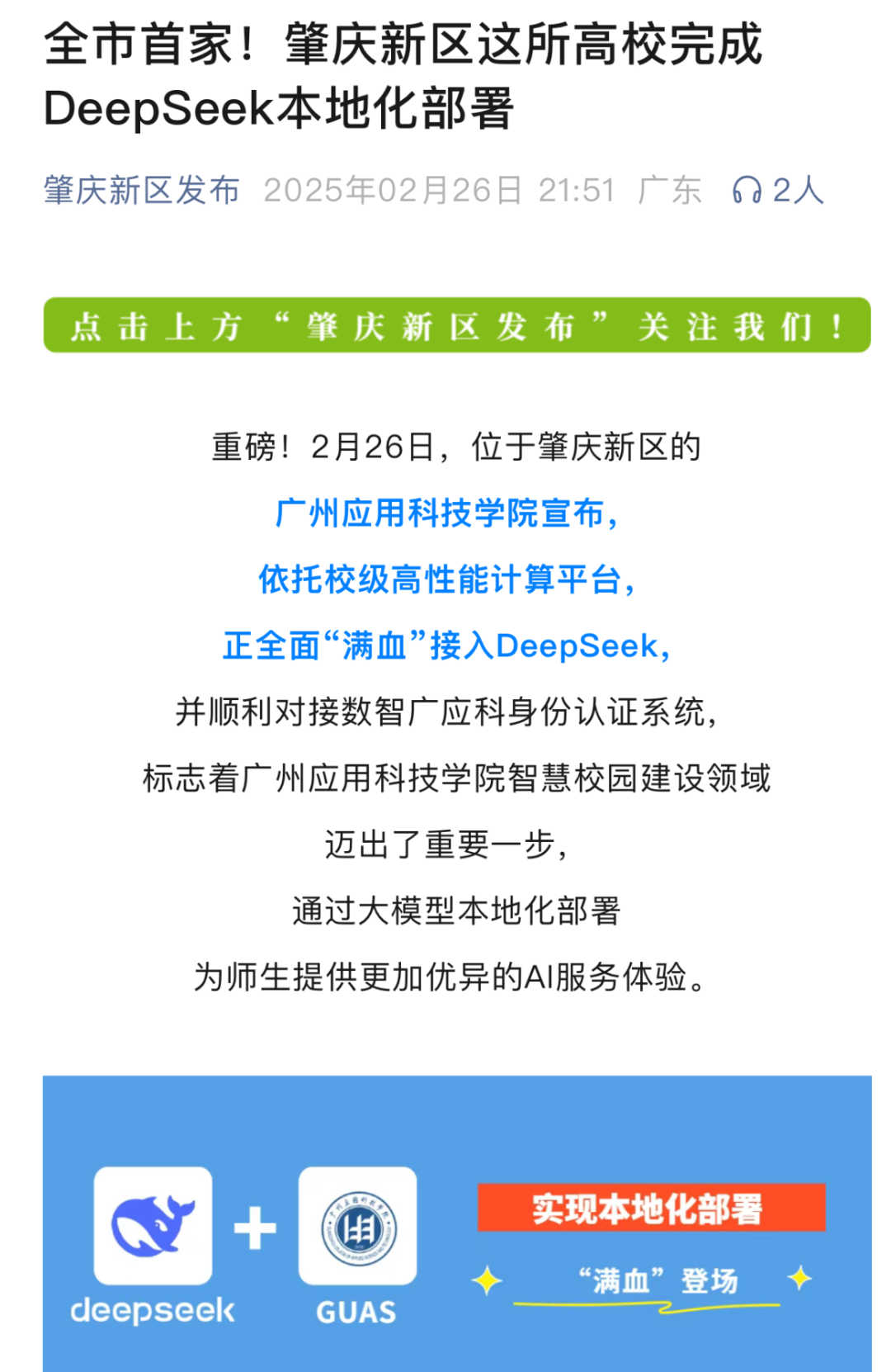 GUAS广州+肇庆,双城“第一” DeepSeeK本地化部署