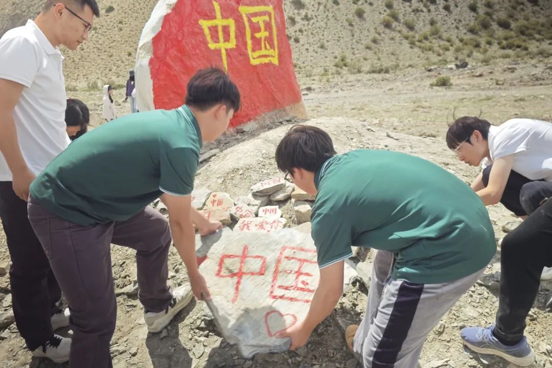 2024年夏天,在学校党政领导和校团委的全力支持下,美术创意学院党委经过深入研讨、精心策划与细致沟通,为实践队提供了全方位的保障。在张红亚、邓铨、顾传海、乔莹等老师的悉心指导下,“马兰花开”实践队以文建朝为领队,奔赴新疆维吾尔自治区克孜勒苏柯尔克孜自治州阿合奇县库兰萨日克乡,开展了以“重走边防路,再温卫国情”为主题的“六个一”社会实践活动:与戍边员同升一面国旗、携手并肩重走一次戍边路、重温入党誓词开展一次党日活动、立足学科专长绘制一次界碑、同唱《歌唱祖国》录制一次祝福祖国视频、发挥专业特色书写一次中国石。用所学知识助力当地发展,扎实推进民族团结进步事业。这一系列活动不仅加深了队员们对边疆地区的了解与认识,更在促进各民族交流交往交融中,让中华民族共同体意识深入人心。