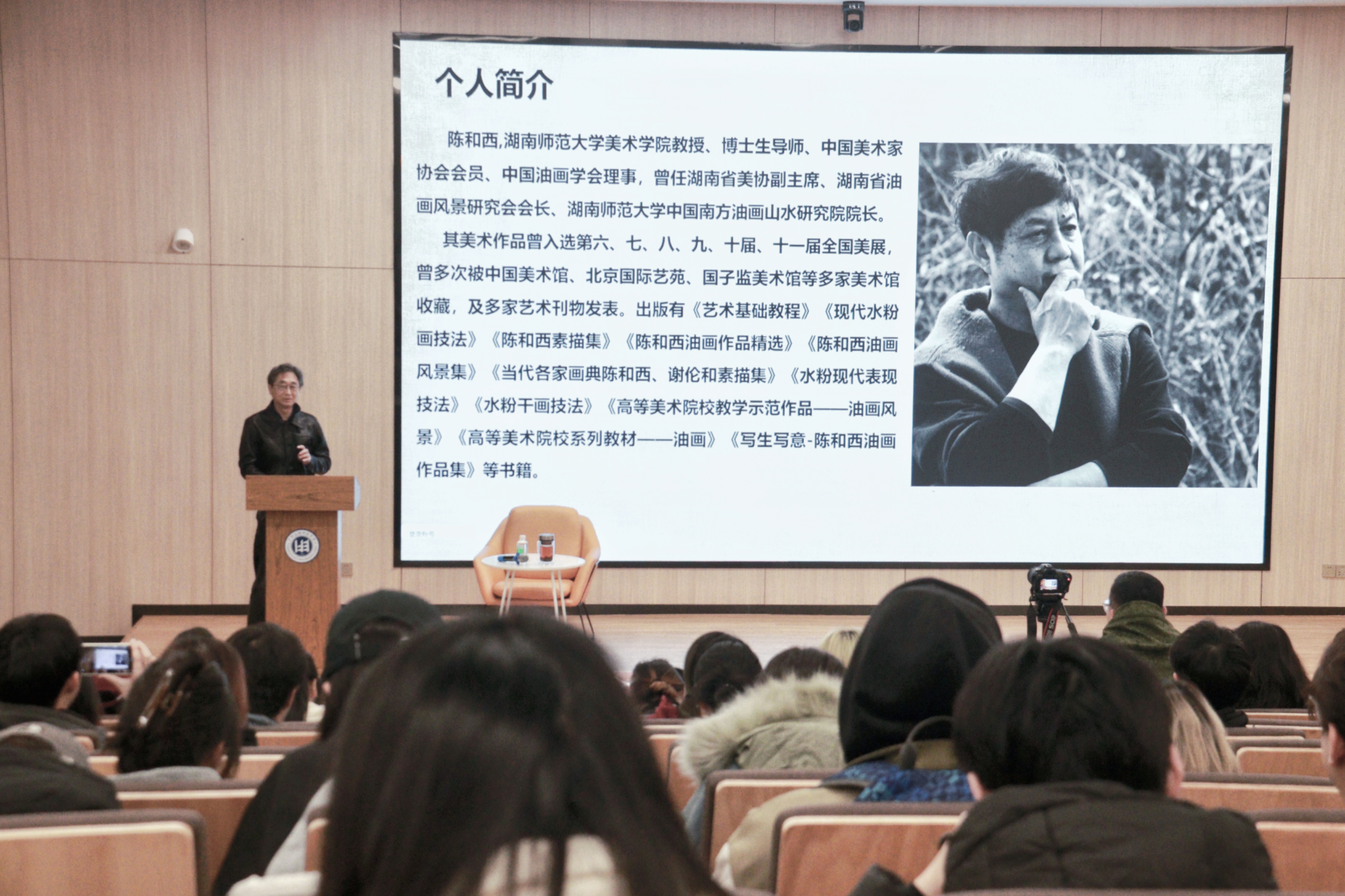 3月31日下午,“百越大讲堂”第五十讲在图书馆一楼报告厅举行,湖南师范大学美术学院教授、博士生导师陈和西应邀为我校师生作《油画底色上的作画技法》专题讲座。广州应用科技学院美术创意学院院长贺锋林、党委书记邓铨、副院长孙强以及300余名师生参加讲座,讲座由贺锋林院长主持。