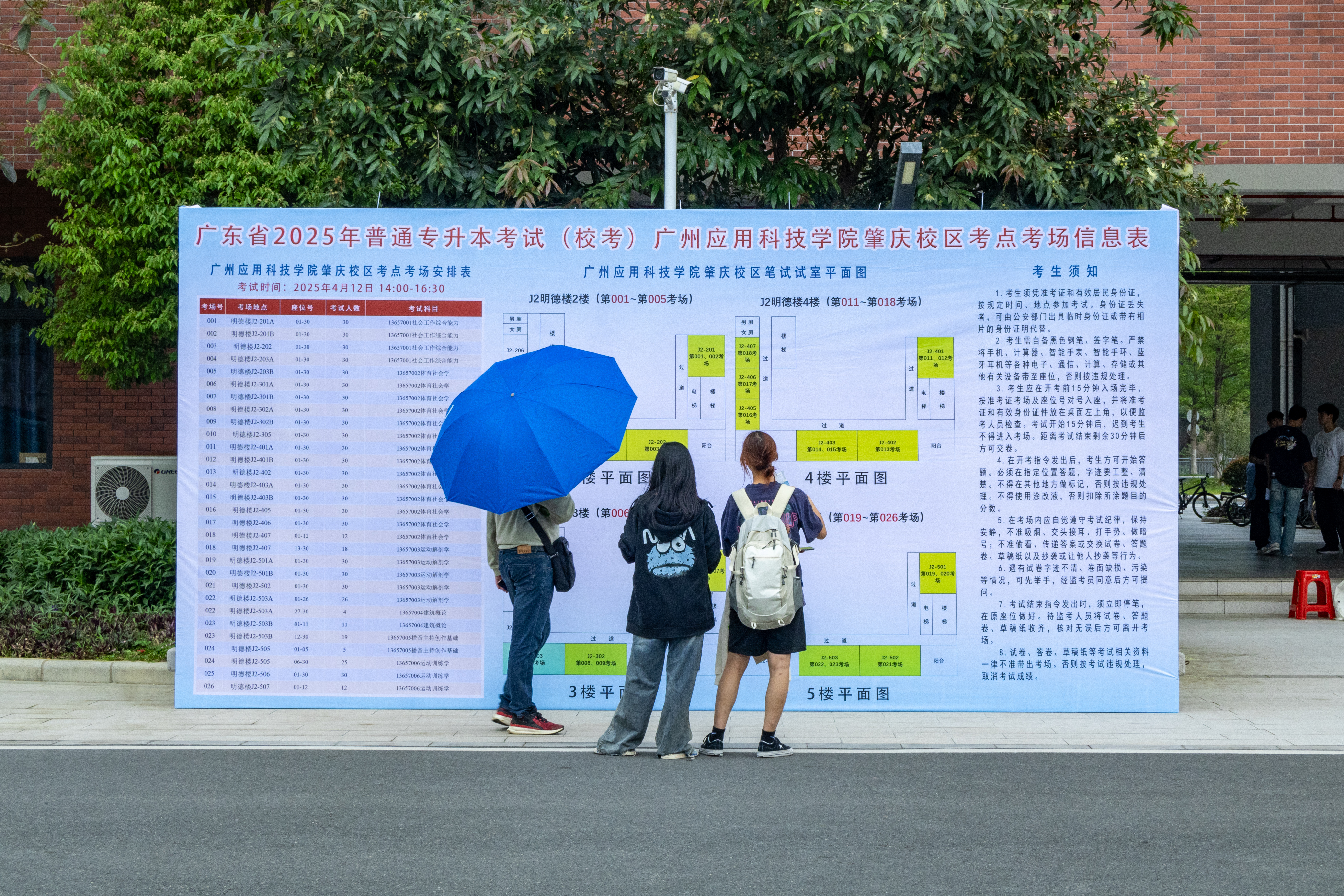 全面部署,安心应考。为保障2025年普通专升本校考科目考试的顺利举行,我校多部门联动,将考生的平安应考放在第一位,特别部署一系列工作以应对考试当天可能出现的强对流天气,并以高标准、高要求、高质量的原则推进各项考务工作有序进行,在考场外设置多处指示牌和志愿者。学校招生办公室、教务处认真做好考试的安排和专业排考;学校党委宣传部通过官方公众号提前发布考点指引信息;校团委为考务工作派出志愿者提供指引服务;学术交流中心客房部向考生开放预订;总务处、图书馆为考生提供餐饮指引、复习和休息等服务;校医室在考场附近设立临时医疗站点;保卫处做好考务安全保障,以确保考试秩序的稳定,保证考生顺利进行普通专升本校考考试。