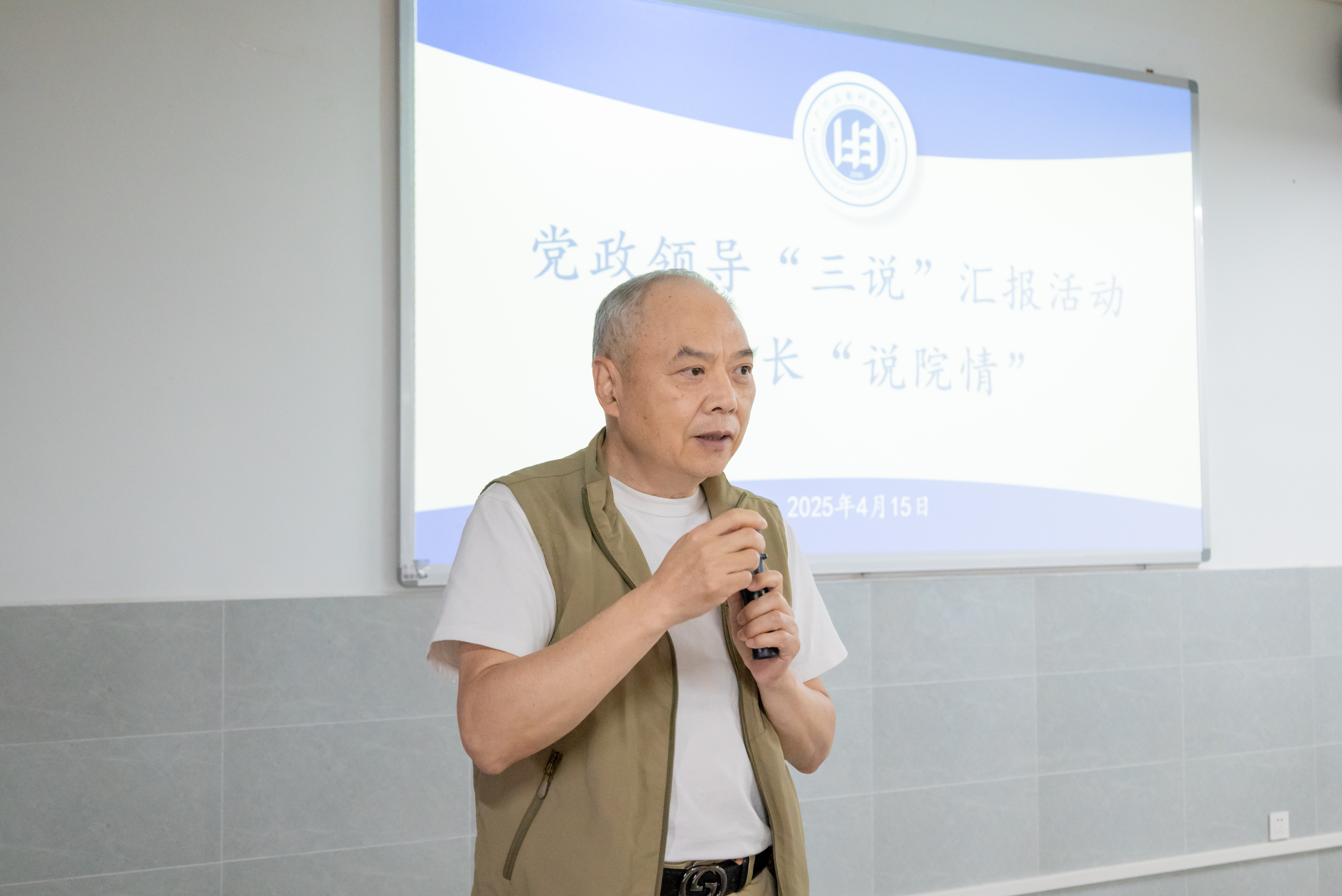 为全面提升本科教育教学质量,扎实推进合格评估评建工作,我校于4月15日在至善楼举行二级学院党政领导“三说”汇报活动,二级学院院长“说院情”、书记“说育人”、教学副院长“说教学”。此次活动严格按照《广州应用科技学院二级学院评建“五说”活动方案》要求,聚焦“凝聚共识、补齐短板、强化特色”目标,通过系统梳理办学成效、精准查摆问题短板,为高质量通过本科教学工作合格评估夯实基础。这也是我校为迎接2027年评估,首次面向全校各二级学院开展大规模阶段性汇报。
