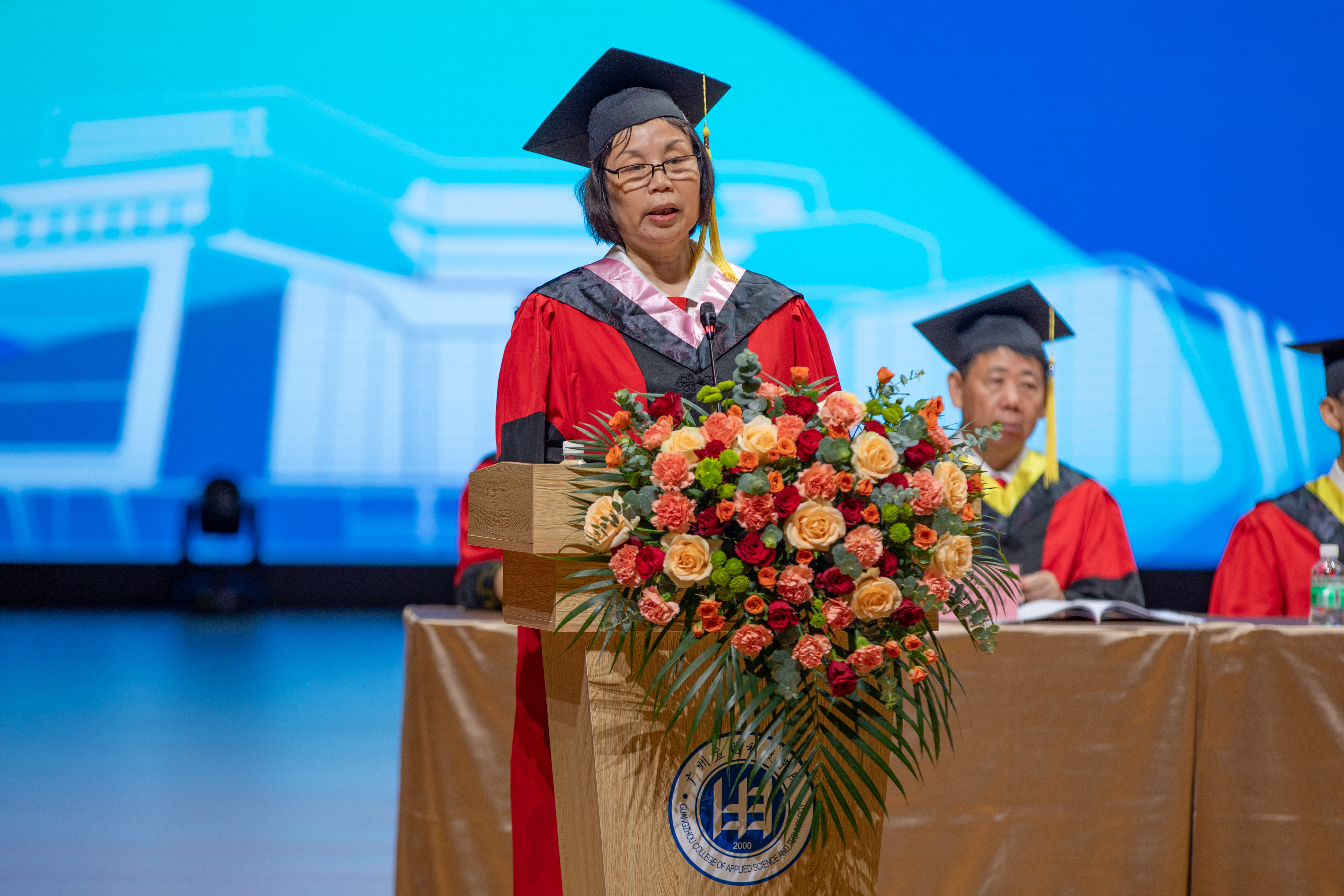 校党委书记陈光团宣读了《广州应用科技学院关于表彰2025届优秀毕业生的决定》,对品学兼优的学子予以嘉奖。校长张光宇为优秀毕业生代表颁奖。常务副校长吴舸先后宣读了《广州应用科技学院关于准予倪志锐等8796名全日制本科学生毕业的决定》及《广州应用科技学院关于授予倪志锐等8796名全日制本科毕业生学士学位的决定》,标志着学子们圆满完成学业。