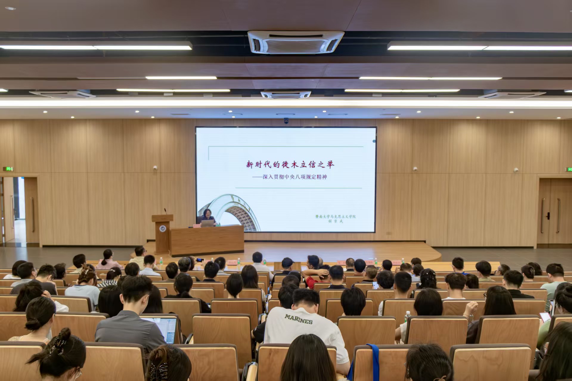 程京武教授进行了题为《新时代的徙木立信之举——深入贯彻中央八项规定精神》的专题讲座。他从“中央八项规定解决什么问题”“中央八项规定包含哪些内容”“把八项规定精神内化为日用而不觉的言行准绳”三个方面全面、系统、深入地解读了中央八项规定精神的内涵和实质,对我校加强作风建设具有重要指导意义。