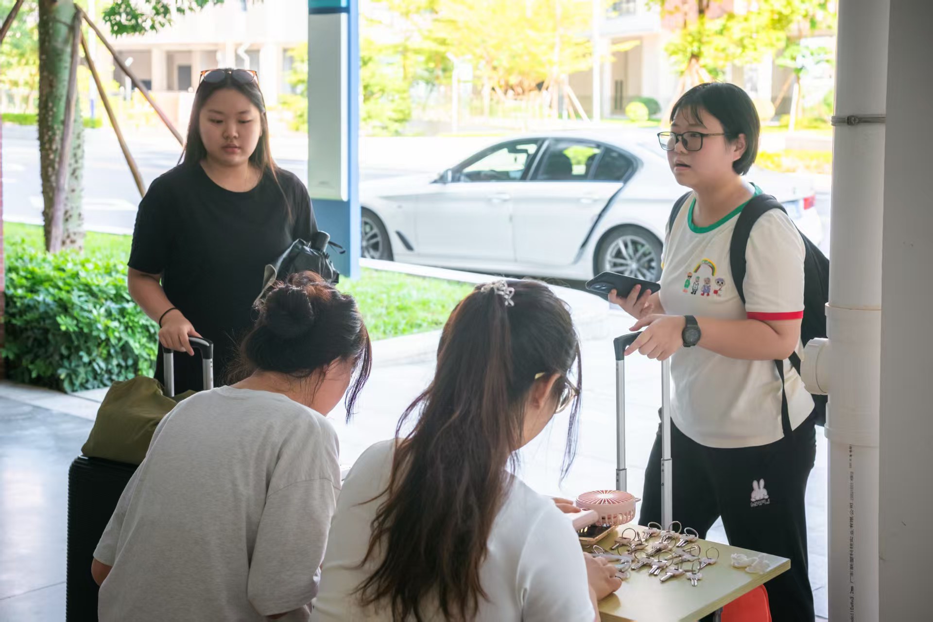 赛事志愿者们刚踏入校园,便迎来了专属的“返校仪式”——在相关人员的引导下,大家有序排队领取赛事物资:印有全运会标识的志愿者服装、各宿舍的钥匙、免费水卡等物品。随后,志愿者们前往集中住宿点安顿,统一的住宿安排不仅便于团队管理与紧急集合,更让大家在赛前形成团结的浓厚氛围。