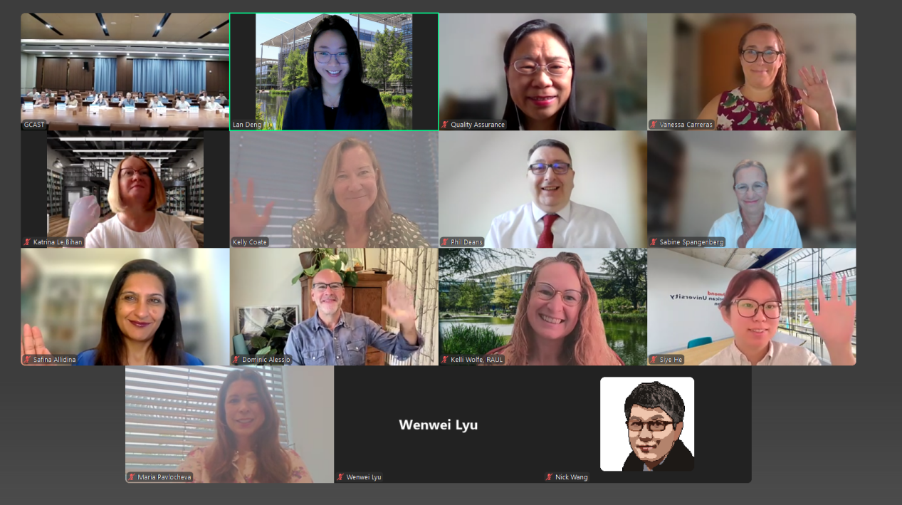 8月27日至28日,广州应用科技学院与英国伦敦里士满大学合作开展的中英联合培养项目英国QAA(高等教育质量保证署)认证答辩会,以视频会议形式成功举行。此次答辩会汇聚中英两校双方核心代表。英方派出包括校长Phil Deans教授、教务长Kelly Coate教授、副教务长Sabine Spangenberg教授在内的十余位专家评审;中方代表包括广州应用科技学院校长张光宇、常务副校长吴舸、副校长刘志新、校长助理欧仕身、校长助理李根珍、财务总监姚满金,以及中国教育集团国际教育部经理王语嫣。学校相关职能部门、二级学院负责人及师生代表也共同参与答辩及交流环节。