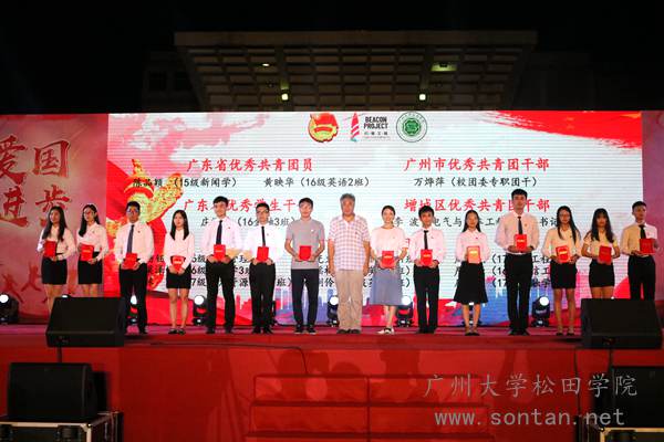 松田网讯(记者:李帆 黄佩珊)6月11日晚,为纪念五四运动100周年以“青春心向党·建功新时代”为主题的广州大学松田学院纪念五四运动100周年暨共青团表彰文艺晚会在学校足球场举办。校长庞永师、党委书记王永云、党委副书记李金飞、副校长李江凌、副校长李文鹏等校领导出席了晚会,各院系、各相关部门负责人,各院系党支部书记、分团委书记及辅导员,受表彰学生及2017、2018级学生参加了晚会。