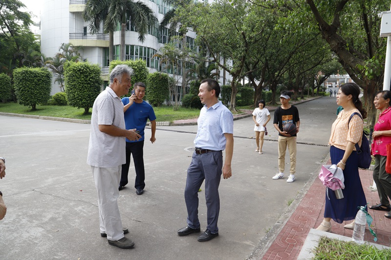 校领导一行来到各个训练场,详细了解新生的军训情况,询问学生们在校过中秋的感受,勉励学生们以校为家,并提醒教官天气炎热要注意学生的训练强度。中秋节下午,校长庞永师一行在操场边遇到来自佛山探望孩子的新生家长,专门走到他们身边致以节日问候,庞永师校长表示,学校将为学生提供更好的保障,促进学生全面发展。随后,校领导一行还走访慰问了中秋在校的值班人员、后勤人员。