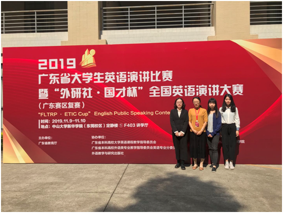 11月9日至10日,2019年广东省大学生英语演讲比赛暨“外研社·国才杯”全国英语演讲大赛(广东赛区)半决赛及决赛在中山大学新华学院举办。外语系张丽与陈铭两位老师带队参赛。经过校园初赛,来自全省63所高校的140余名选手汇聚一堂,同台竞技,参赛规模创历史新高。省内各高校知名外语专家担任此次大赛评委。赛场上,我校选手语音标准、表达流畅、观点新颖、充分展示了我校学生扎实的英语功底、敏捷的思辨能力、娴熟的演讲技巧和深厚的知识积累。经过激烈角逐,我校2017级英语专业李凡子莹同学表现突出,荣获二等奖。