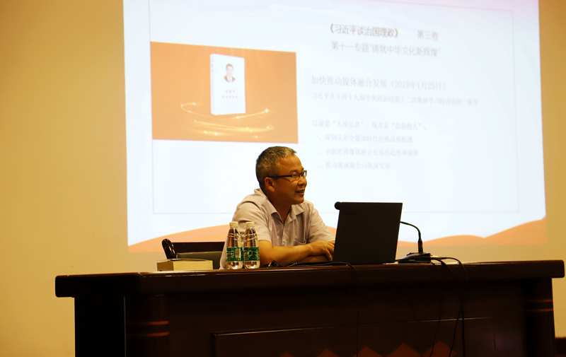 王永云书记在讲课过程中,结合我校师生参加龙舟、毽球等传统体育文化赛事,以及参与新媒体运营的真实案例,旁征博引、逻辑清晰,让在场师生领会了文化自信的深刻内涵,激励了广大师生坚定理想信念,志存高远,脚踏实地,勇担时代新使命。