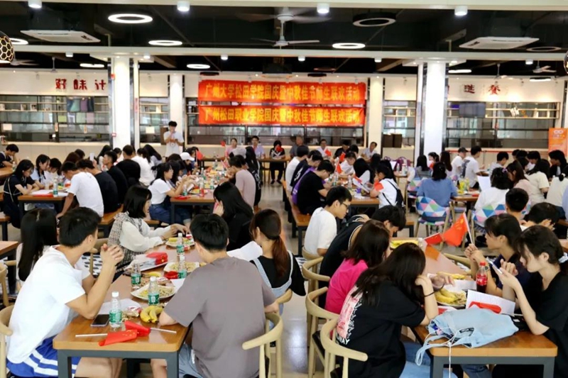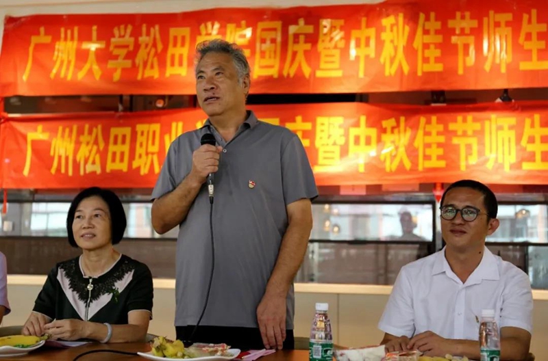桂香万里,中秋意浓。值此国庆节和中秋节双节来临之际,10月1日下午,广州大学松田学院、广州松田职业学院在学校第三食堂,联合举办国庆暨中秋佳节师生联欢活动。我校校长庞永师、广州松田职业学院党委书记张毅,以及我校党委副书记裴九雄出席了联欢活动,松田“两院”留校的师生代表参加了活动。
