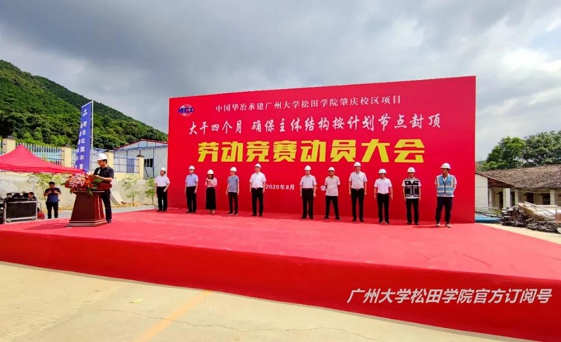 8月26日上午,在广州大学松田学院肇庆校区项目施工现场,承建施工方中国华冶两级公司召开“大干四个月,确保主体结构按计划节点封顶”劳动竞赛动员大会,以“亮剑出鞘”之势全面掀起施工大干热潮。